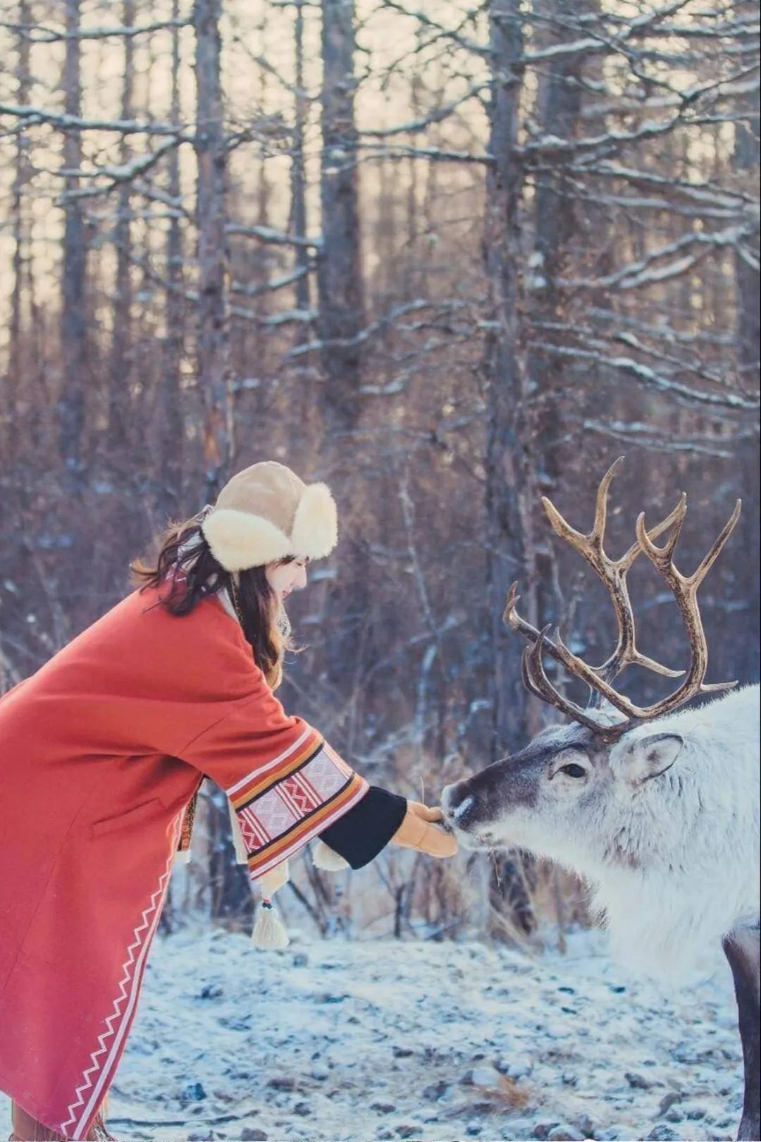 圣诞老人的座驾驯鹿还藏在了鄂温克驯鹿部落,这里展示着中国最后的驯鹿部落原始的生活方式,除了驯鹿还有专属东北的精灵小狍子。在林海雪原寻找可爱的驯鹿,与他们合影亲密接触,呆萌的模样足以将冰雪融化。