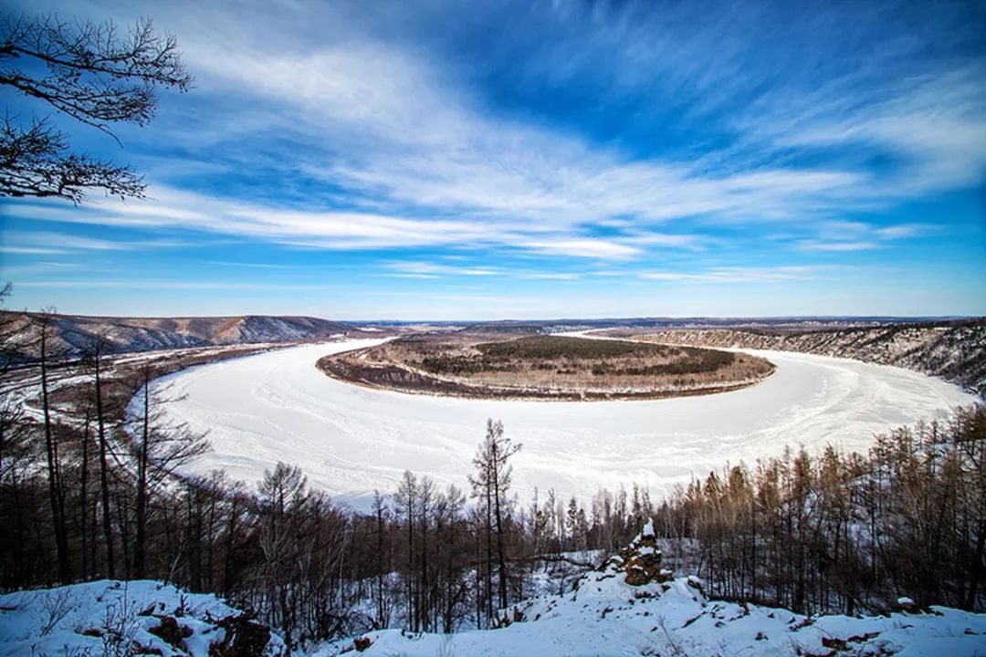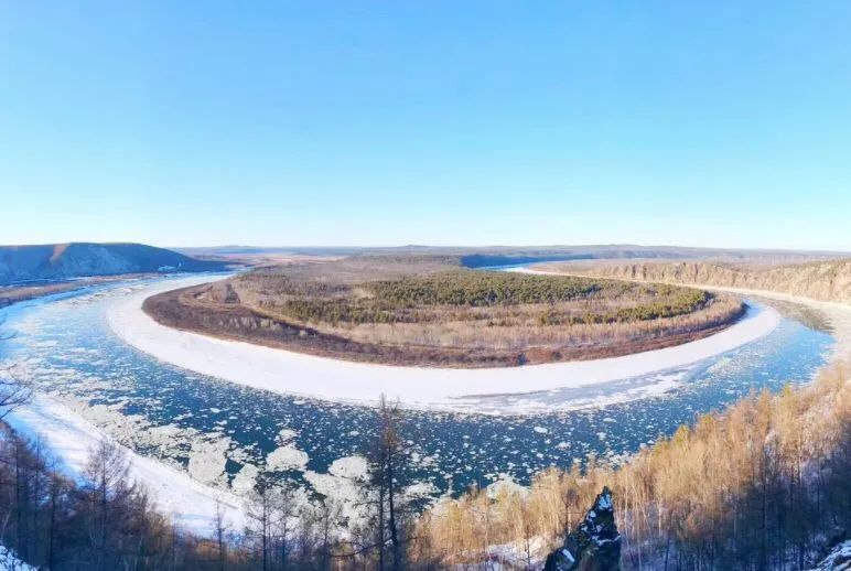而乌苏里浅滩还有他的官配CP龙江第一湾。俯瞰龙江第一湾,茂密苍茫的白桦林松树林与皑皑的白雪一望无际,非常壮观。被江水环绕的小岛属于俄罗斯领地,一次眺望,跨越两国,十分有趣。