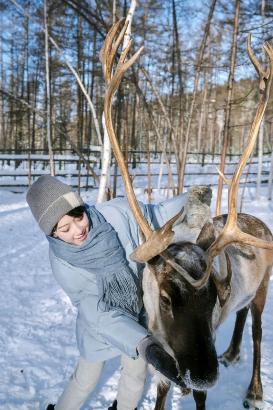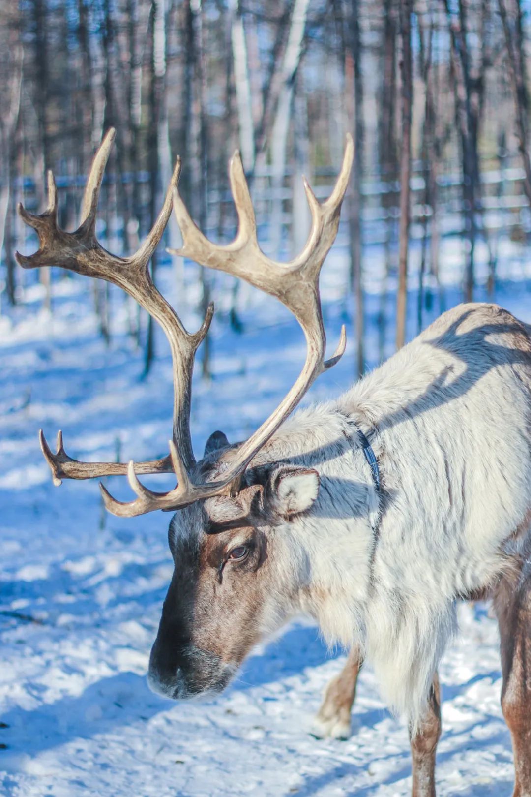 见鹿时在林,在大兴安岭腹地的漠河有着随处可见成片成林的白桦林。笔直挺拔的白桦树耸立在寒风中,树干上面是被雪覆盖的枝条,皑皑白雪覆盖落叶,漫步其中留下深深浅浅的脚印,和煦的阳光照在身上,最素净的景象勾勒着最梦幻的场景。