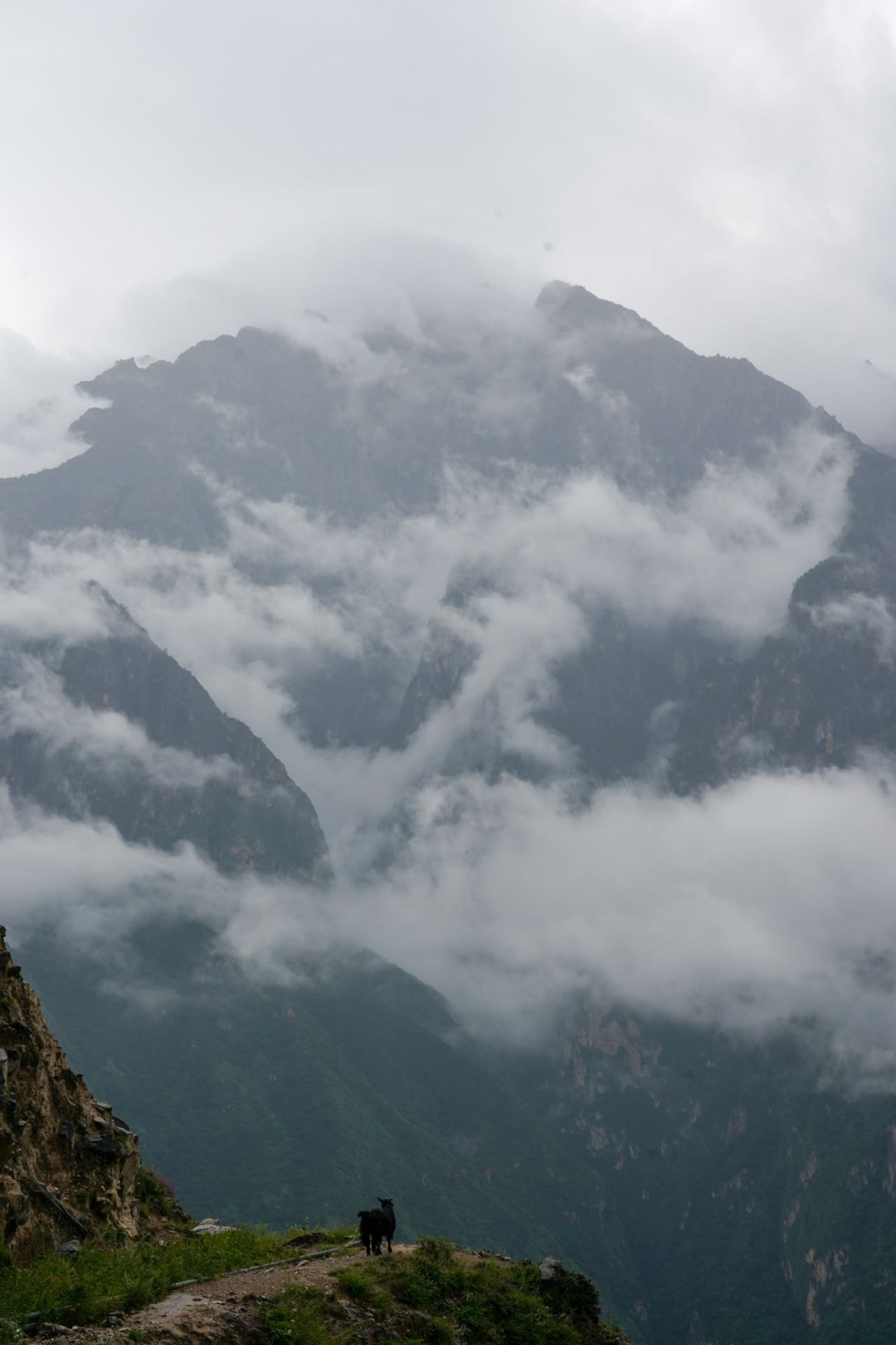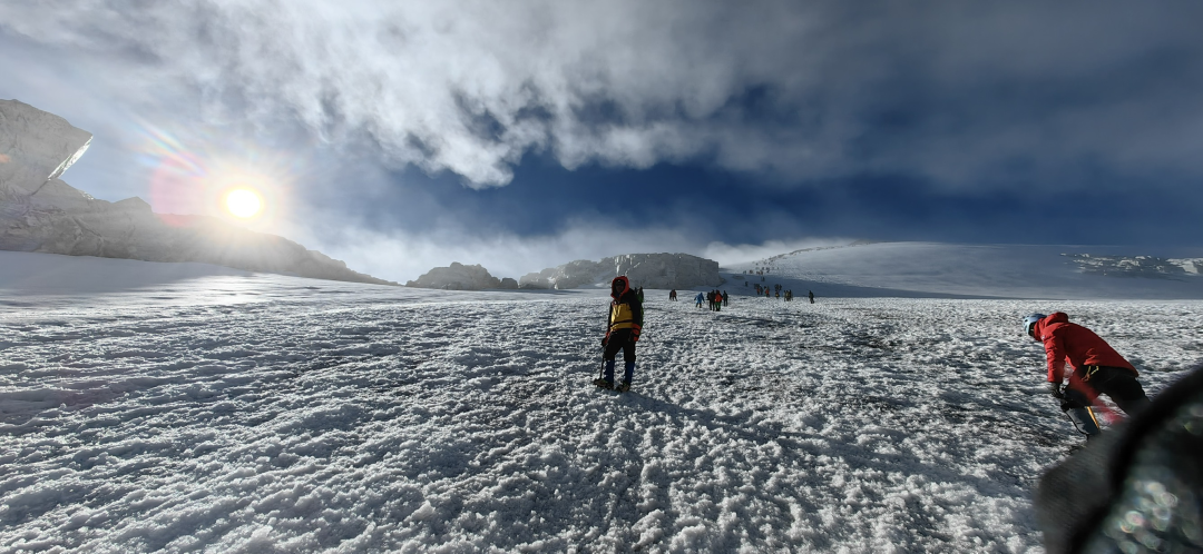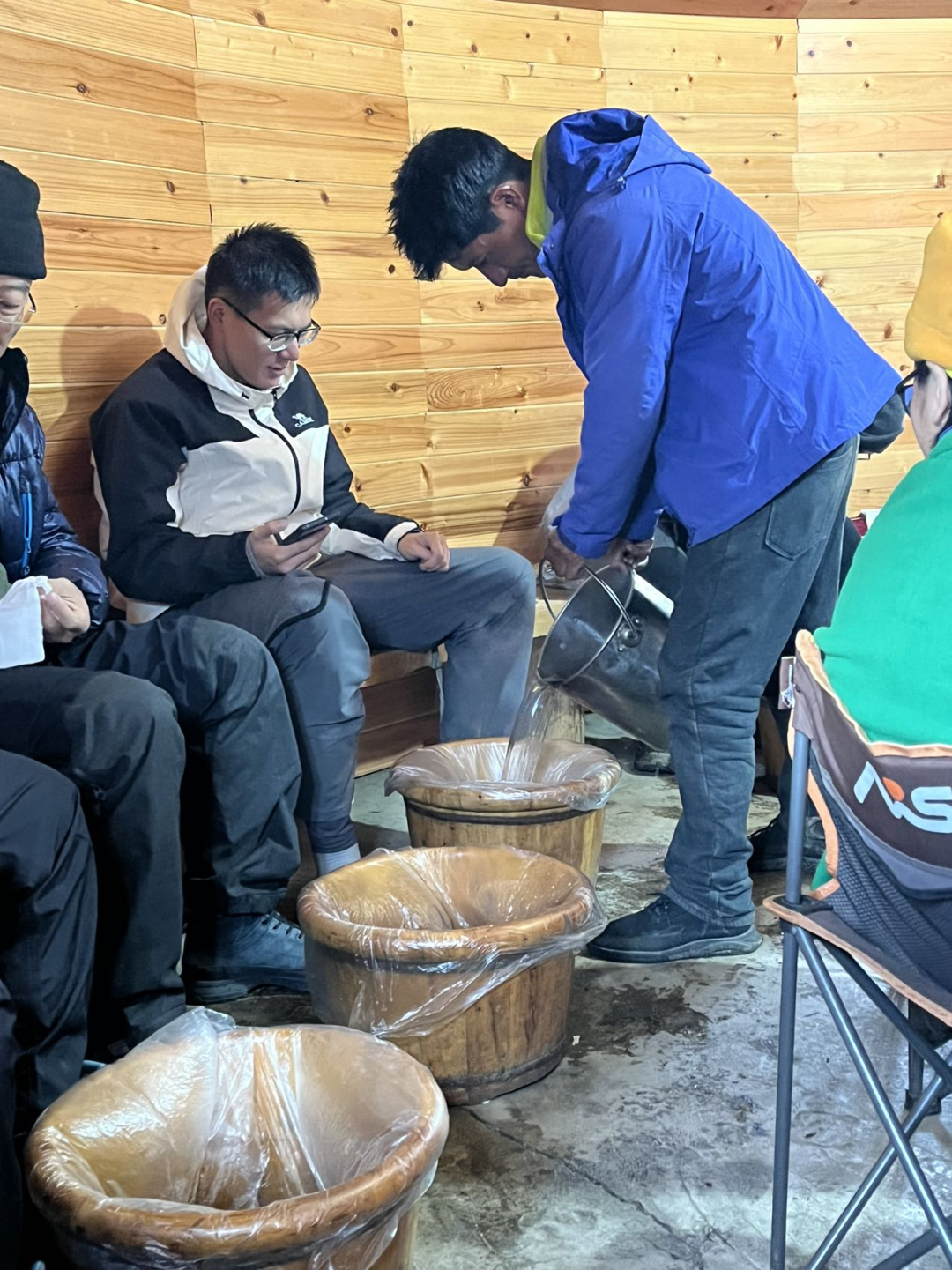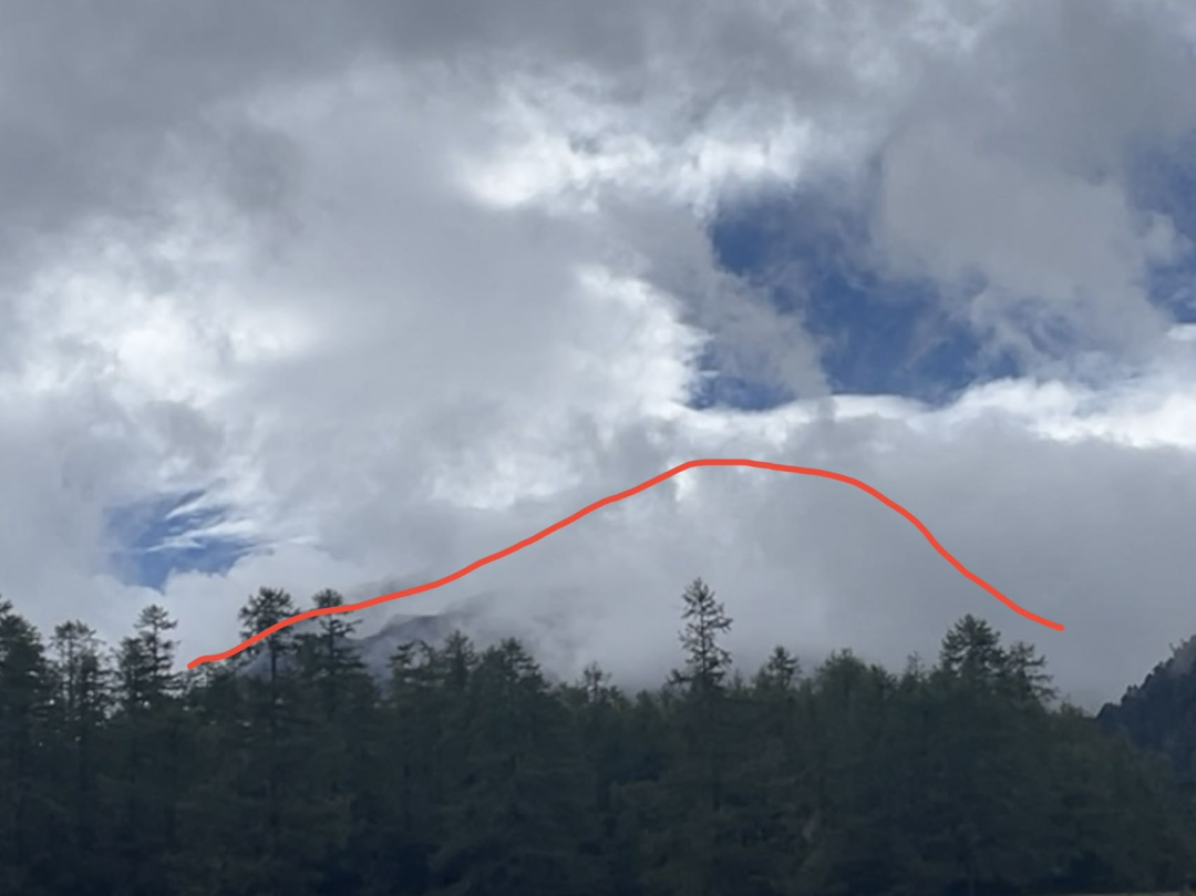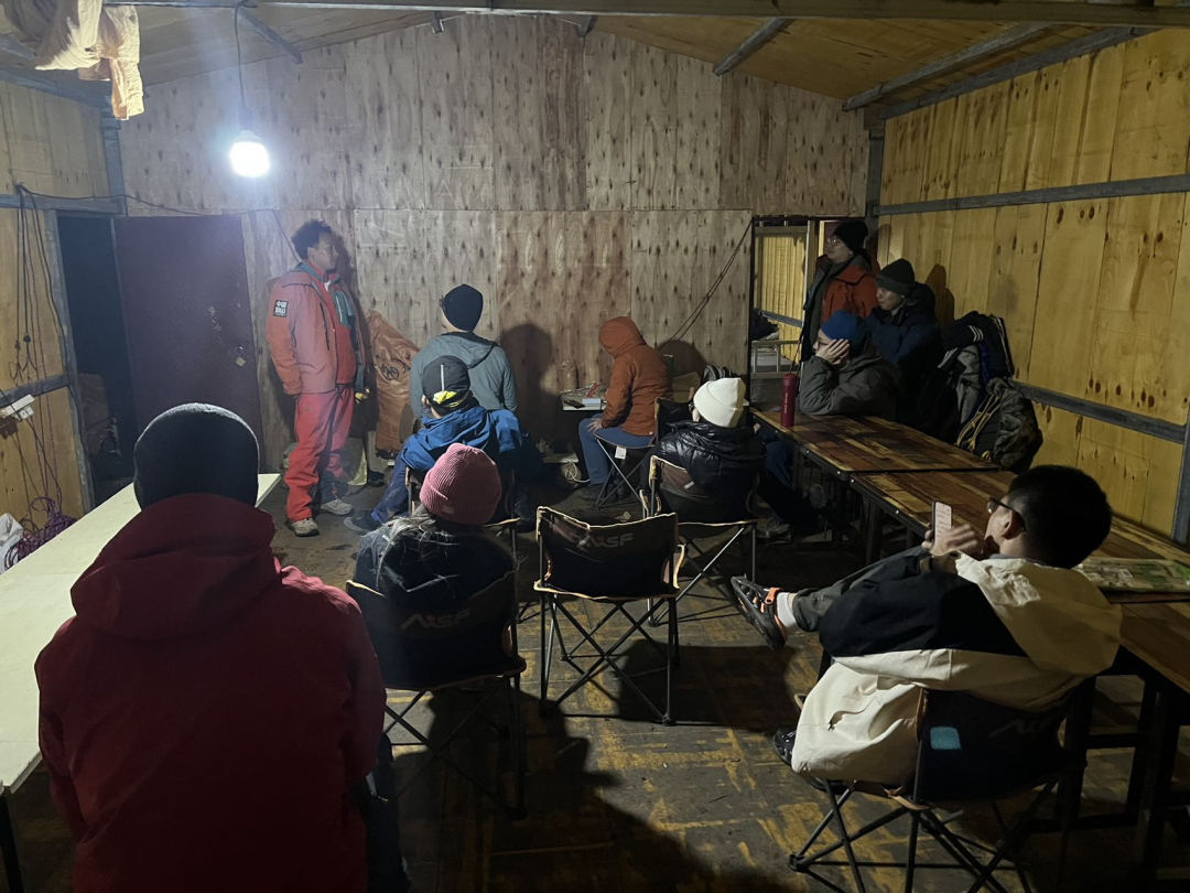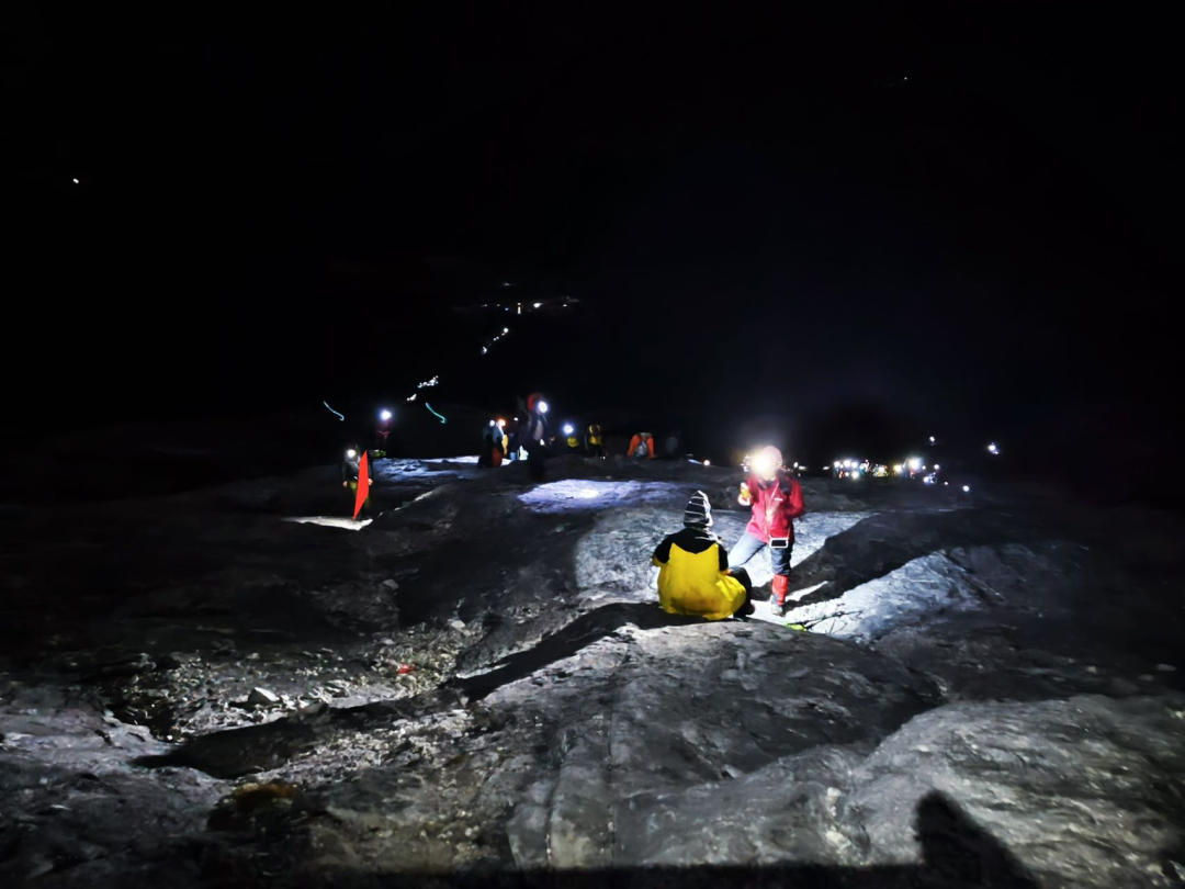 走到大本营,倒是觉得哈巴又没那么吓人了。大石板看起来缓了很多,就是一个长长的大缓坡,透过云雾可以隐约看到雪线之上的月亮湾,甚至是顶峰,感觉好像也不是很难,甚至口出狂言:“区区小山,明天一定拿下” (就因为这句话,第二天爬山时我真的完全没想过下撤,不然多丢脸啊)
