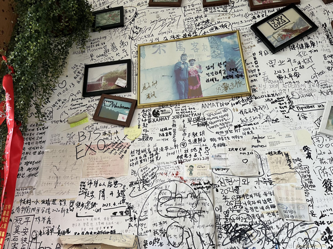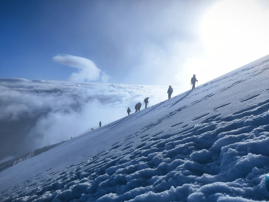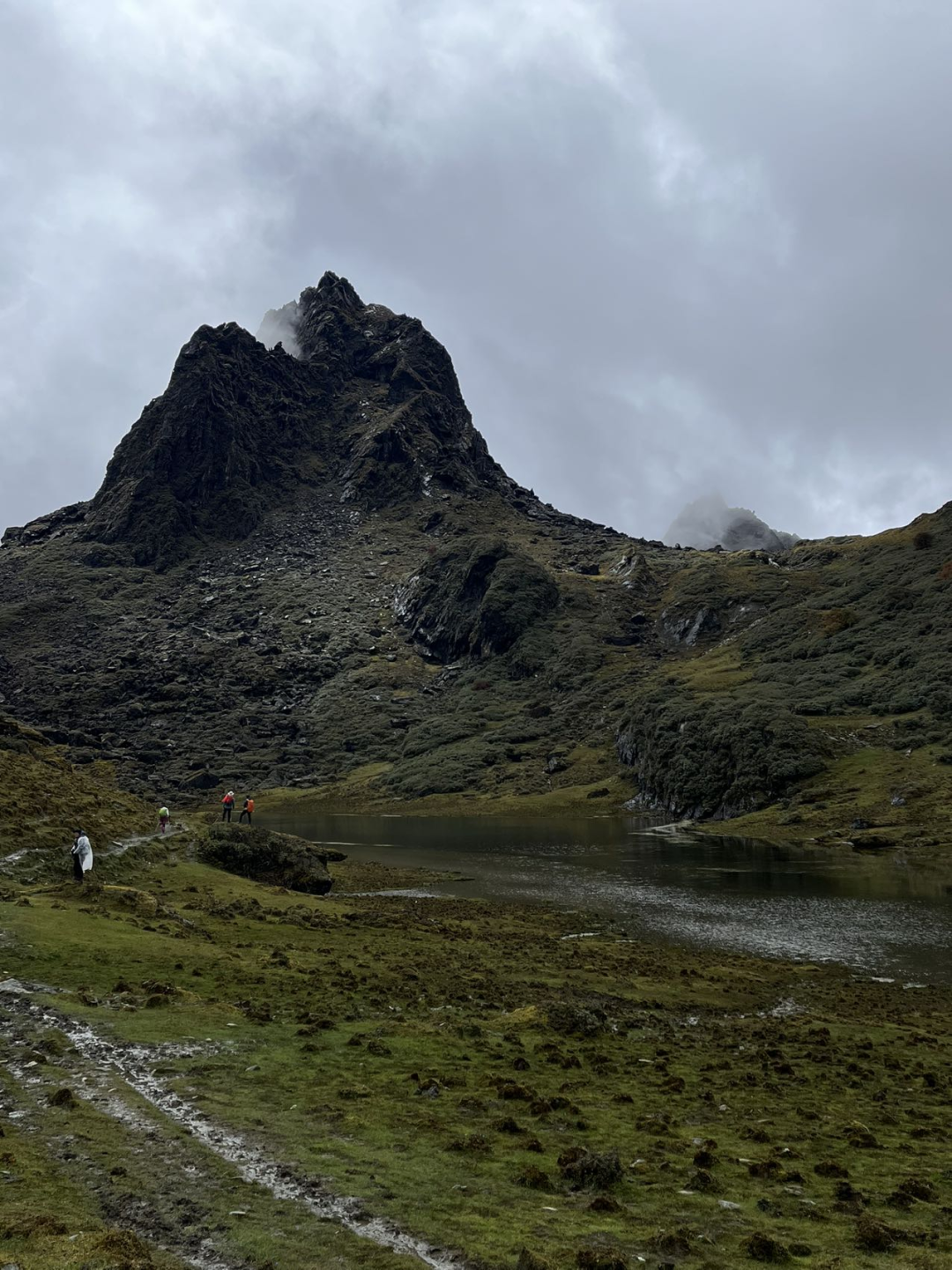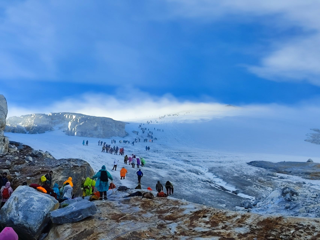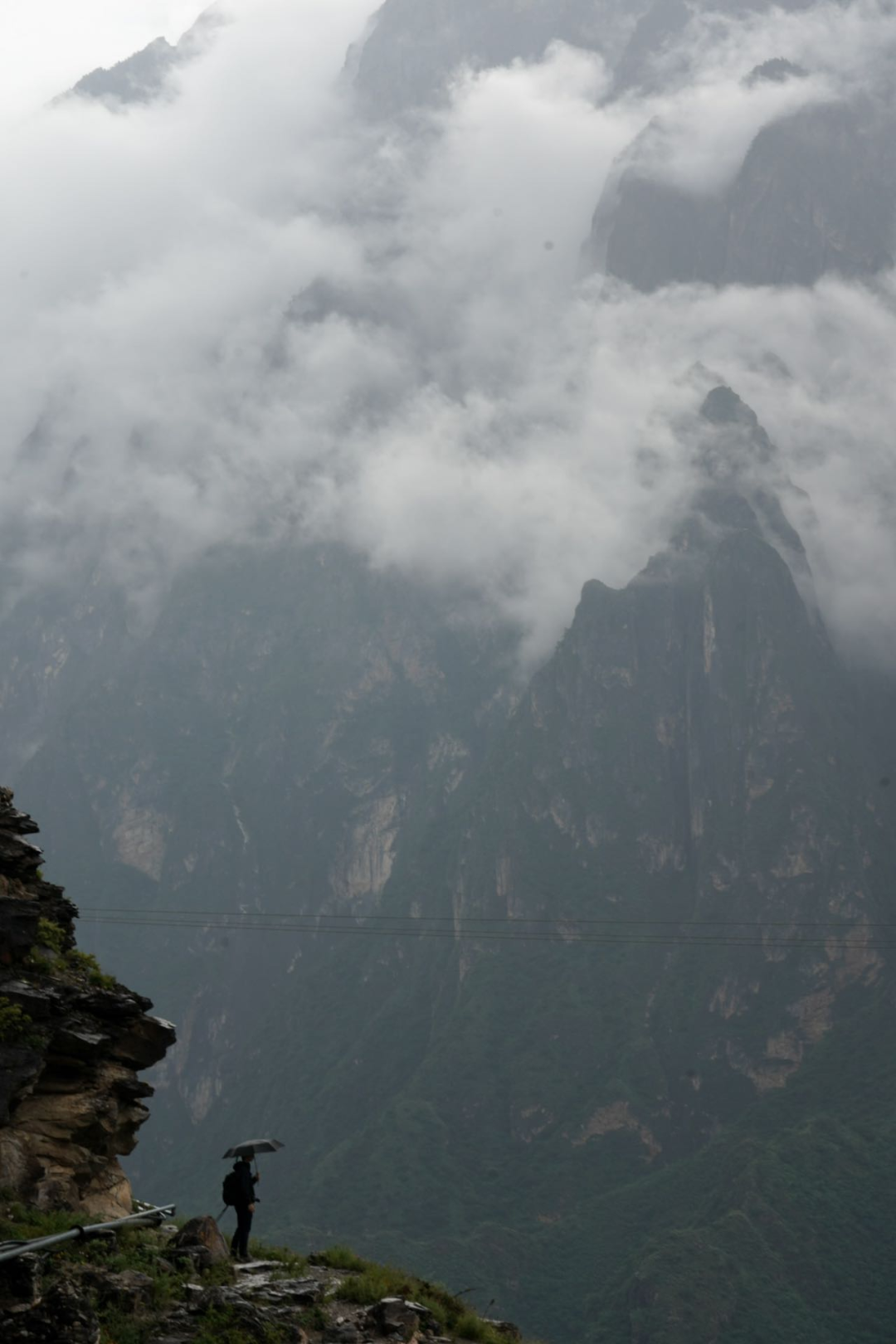 走到大本营,倒是觉得哈巴又没那么吓人了。大石板看起来缓了很多,就是一个长长的大缓坡,透过云雾可以隐约看到雪线之上的月亮湾,甚至是顶峰,感觉好像也不是很难,甚至口出狂言:“区区小山,明天一定拿下” (就因为这句话,第二天爬山时我真的完全没想过下撤,不然多丢脸啊)