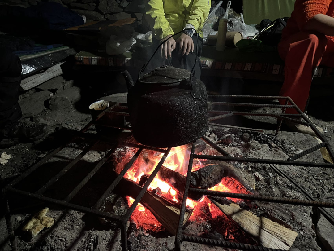 在被风吹得即将崩溃之时,终于翻过了一个4300米的小土包。之后有一个分岔口,一边是继续上山,拍黑海的全景,另一边则直接下山去往营地,像我这种对生活充满热情的人当然是选择…直接下山。去营地烤火可比爬上去拍照舒服太多了。