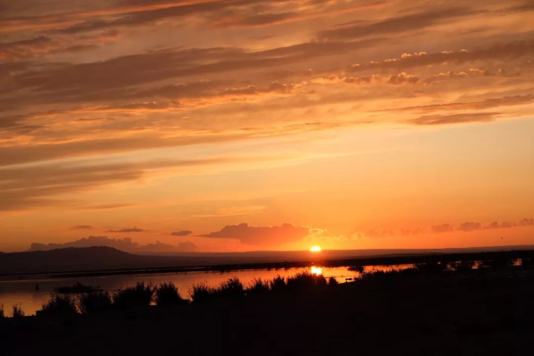 新疆的日落时间比较晚,大概在晚上十点左右,当看着太阳缓缓落下,洒落的光辉与飘散的云朵不断交错碰撞,变幻出别样的色彩。