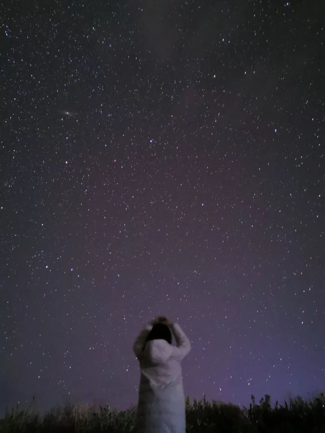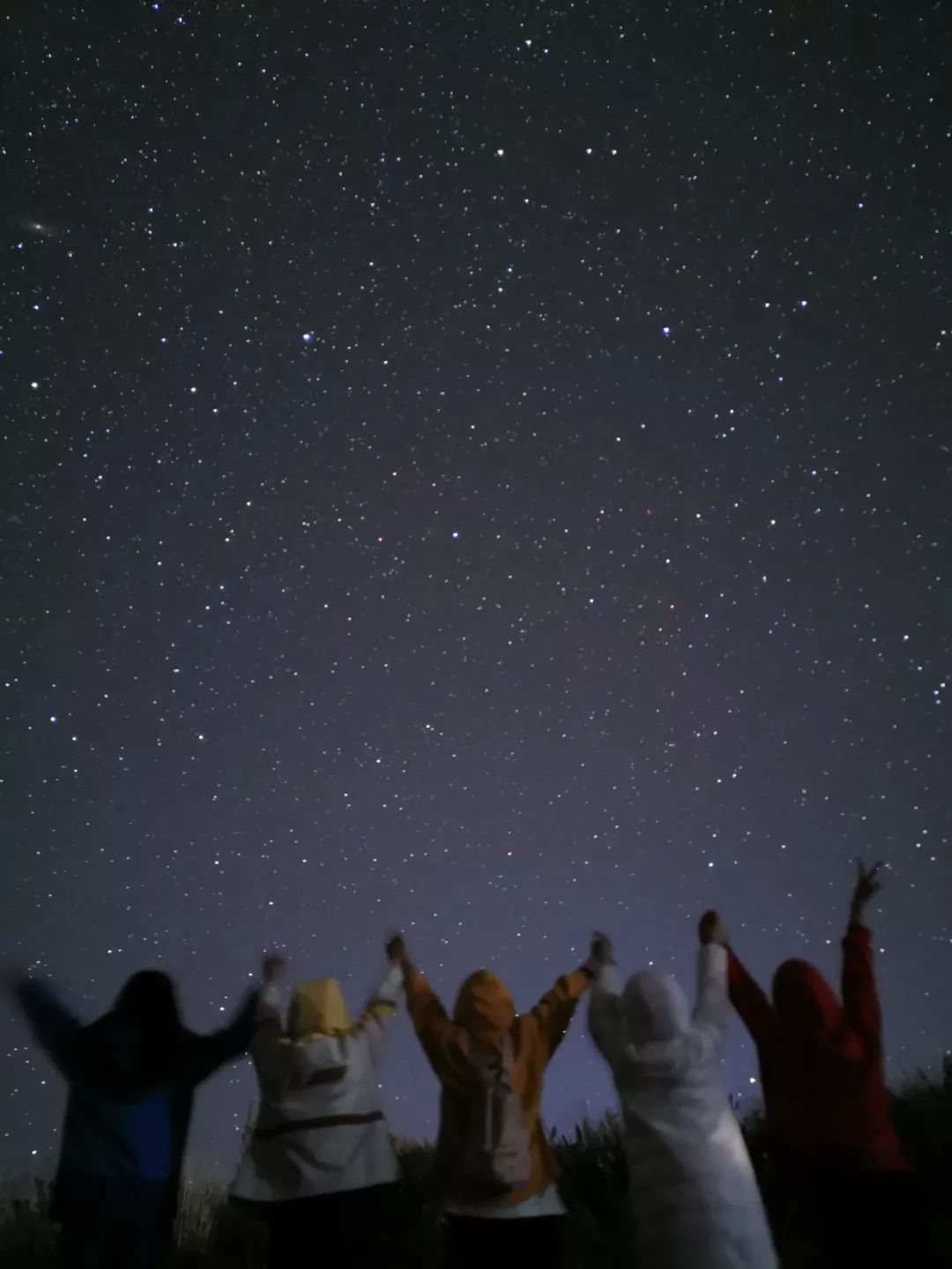 其实碰上星空,真的全靠运气,本来已经放弃了,却不曾想,领队突然在群里告诉大家天上有好多的星星,在附近马路边才能看得更好,于是我们团里的天使泽星就过来给我们带路了,此时此刻我突然明白了他名字的含义。