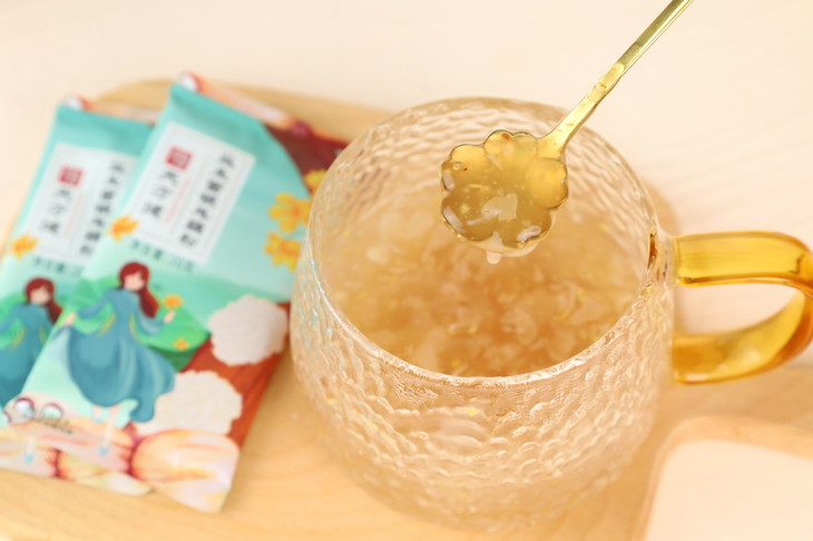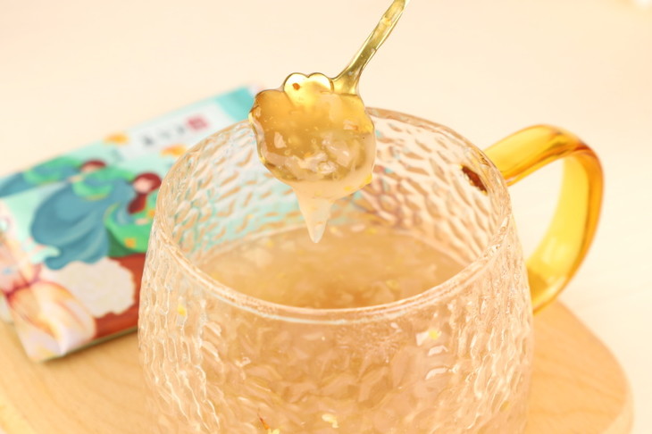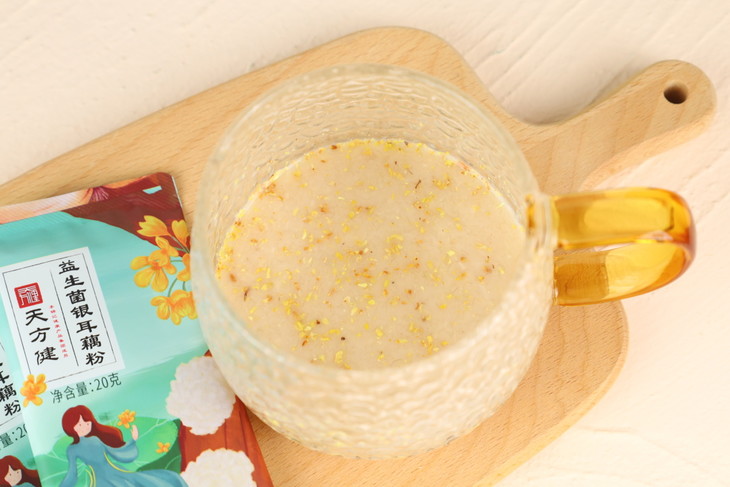 除了藕粉外,「益生菌银耳藕粉」还搭配了桂花干与银耳,不仅增添风味、提高口感,还兼具更多补益作用。