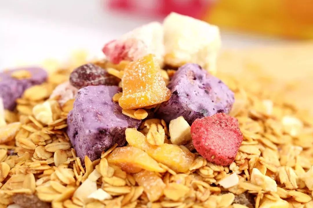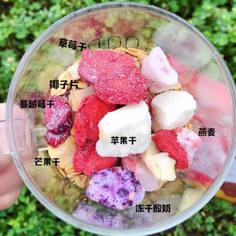 宝宝拳头大小酸奶冻干粒→大颗水果干→超多芝麻南瓜子→饱满燕麦粒,无一不告诉我,它真的不!简!单!
