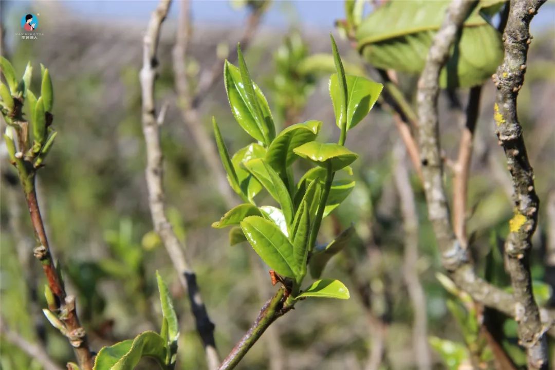 再查看茶树发芽情况,已经有很多鲜绿的芽叶生长在枝头,有的呈簇生长在枝头上,4月中旬就能大量采制;