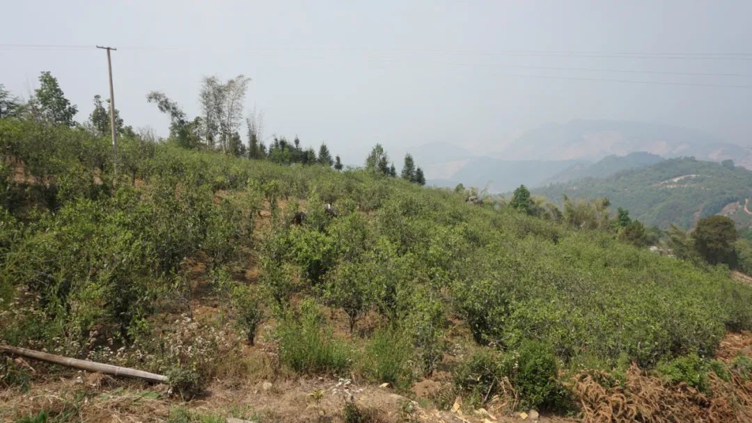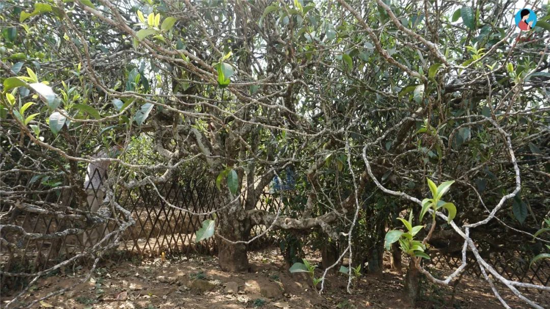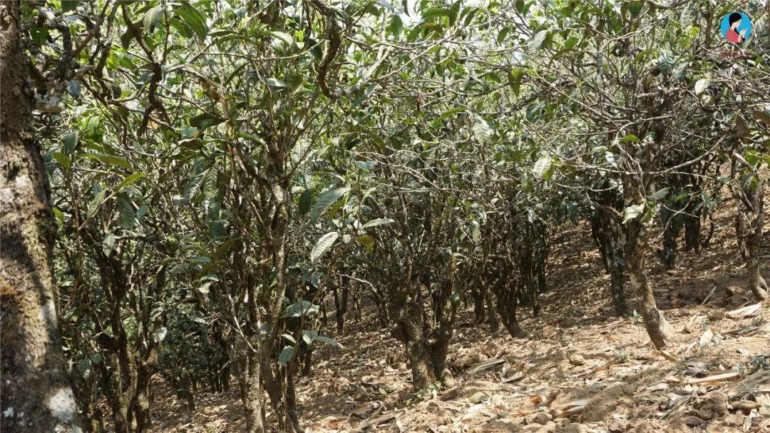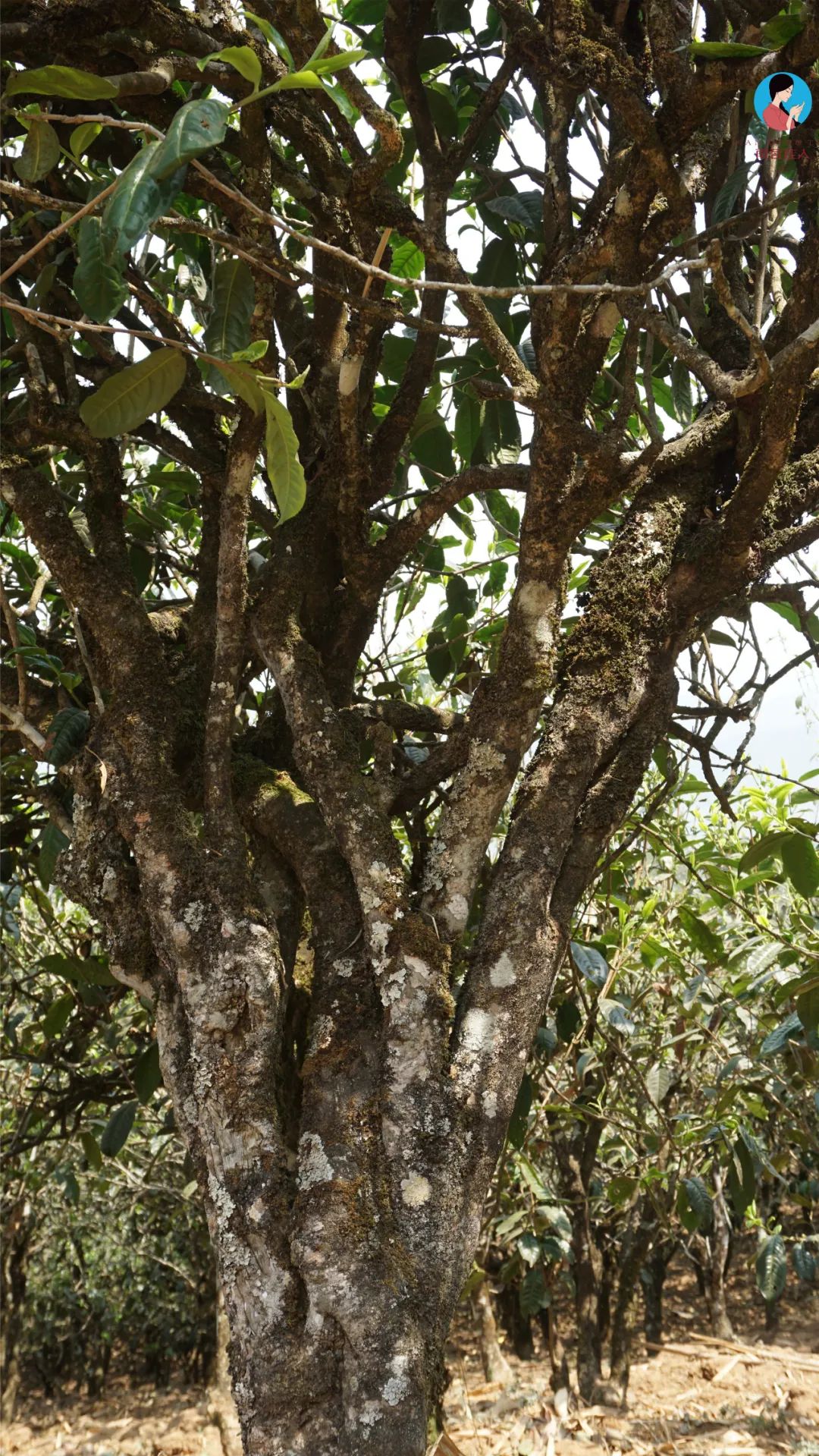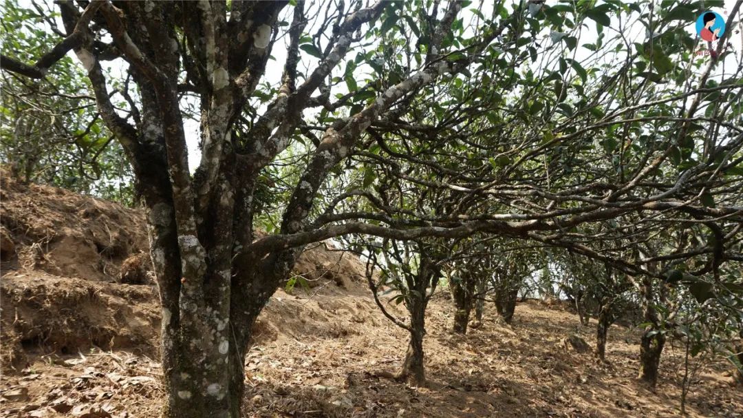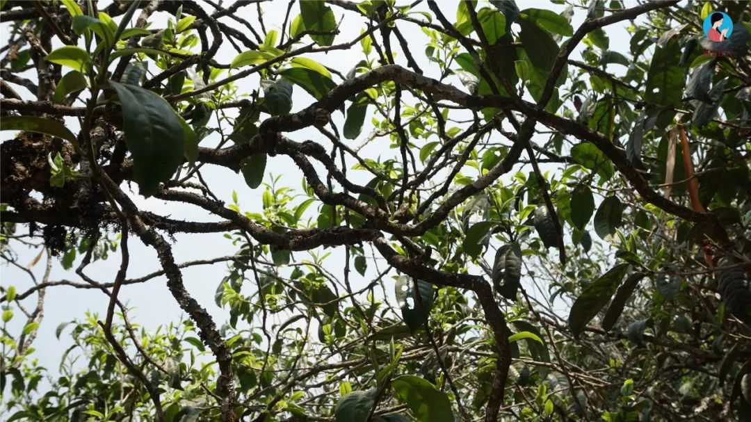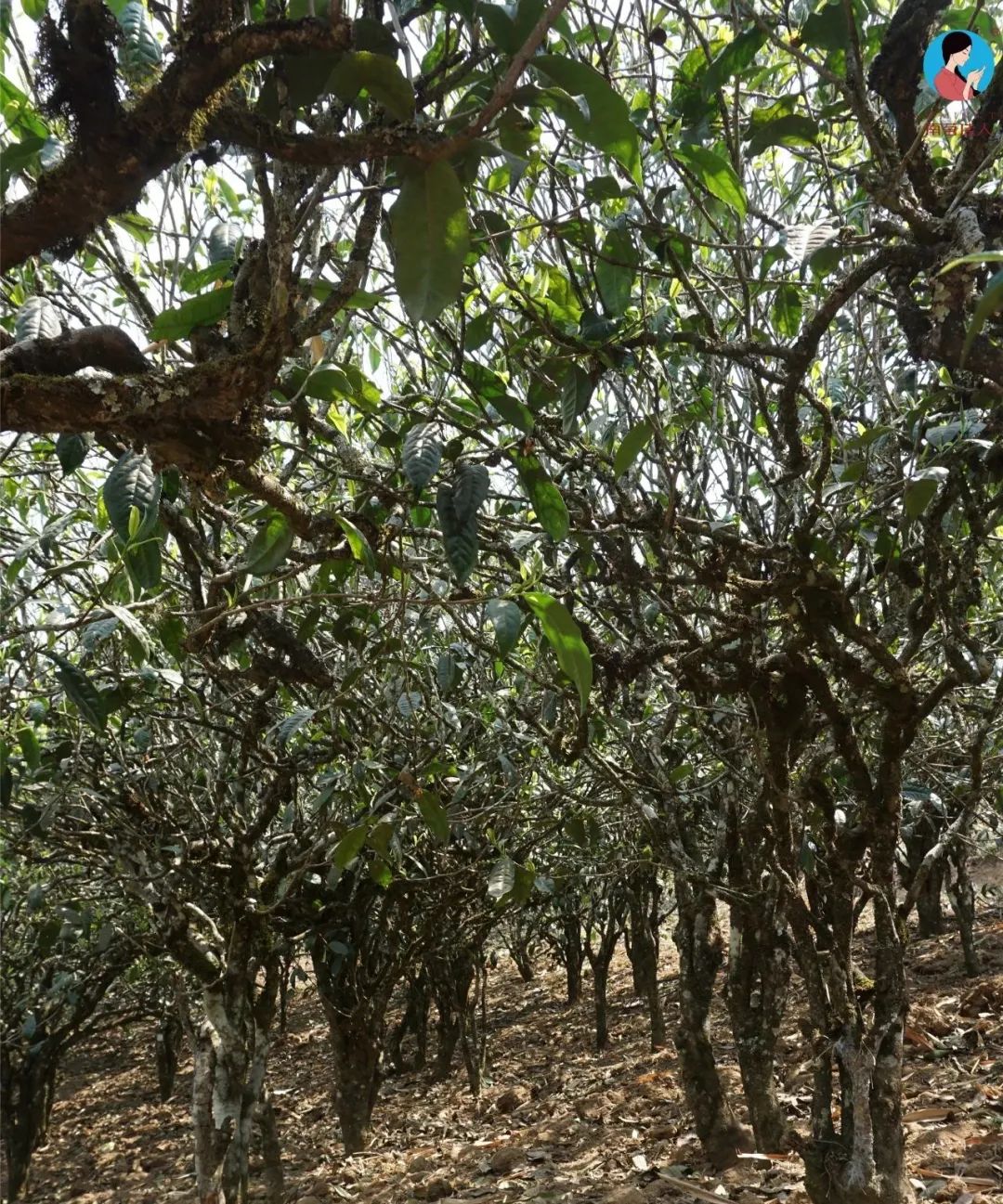 大部分古茶园靠近山顶,地处平缓的向阳坡上,多数藤条古茶树冠幅较大,枝条密布,即使只有一棵茶树,远远看去也是枝繁叶茂的景象。