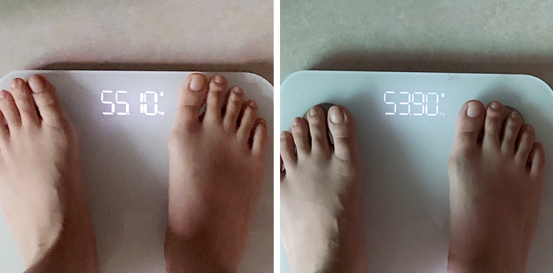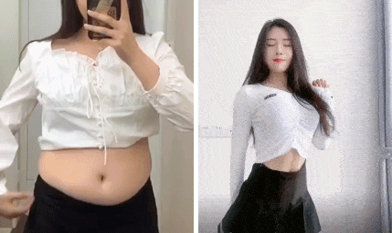 现在肚子也是扁扁的,穿裤子、吃饱不会明显鼓出来了。