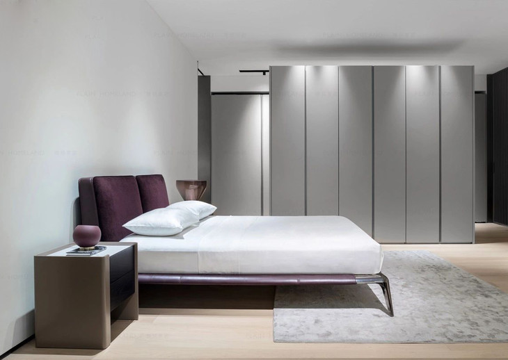 Weed床将极简的质感魅力发挥得淋漓精致。简洁的实用主义,轻盈的金属底座用皮革与布艺包裹,两种材质的对比出克制的美感。床头两个方形大靠包,饱满而舒适,立挺而柔软。稳固的不锈钢脚轻巧灵动,床身四角圆润处处贴心,轻松搭出一个舒适且颜值满满的卧室空间。