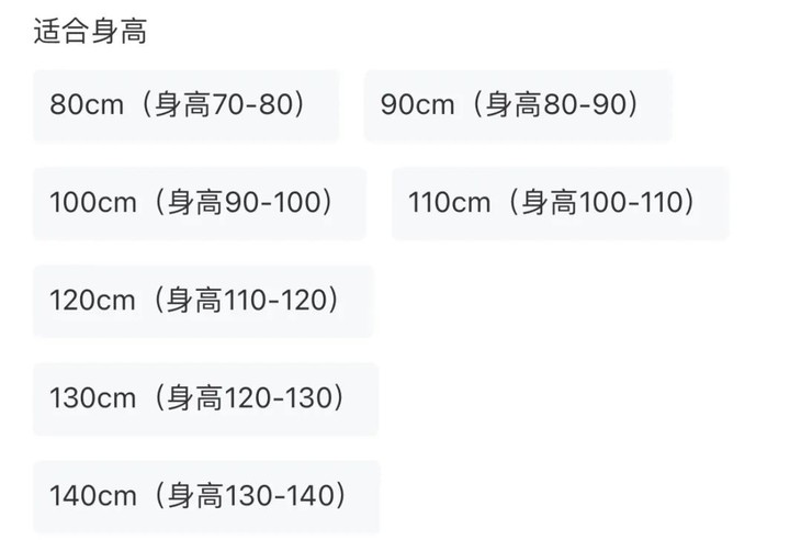 给大家做了7个尺码,身高70-140cm的孩子都能放心穿。