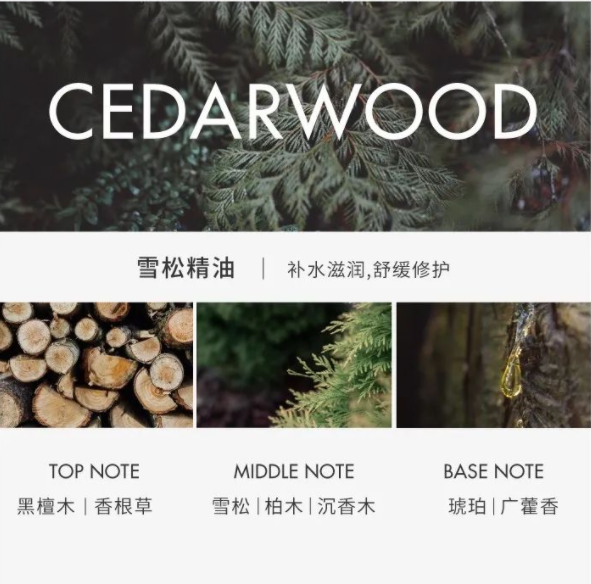 揉开能闻到一股雪松木香混合淡淡的檀木香,像大雪天坐在壁炉旁烤着雪松干树枝。随着时间推移,淡淡的🌲松树油脂香溢出来。心烦意乱的时候掏出来抹一抹,还能有安神的效果。