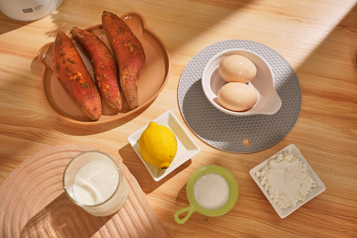 3、在碗中打入鸡蛋,放入白糖、淀粉、牛奶,适量柠檬汁(用于去除蛋清腥味),搅拌均匀