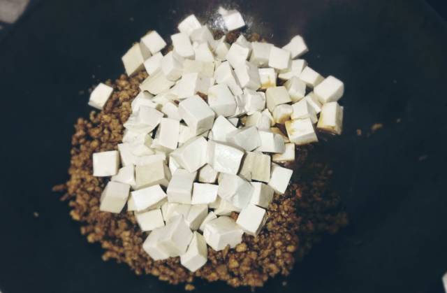 豆腐块不要太大,这样肉汁才会渗透到豆腐内部,更有滋味;