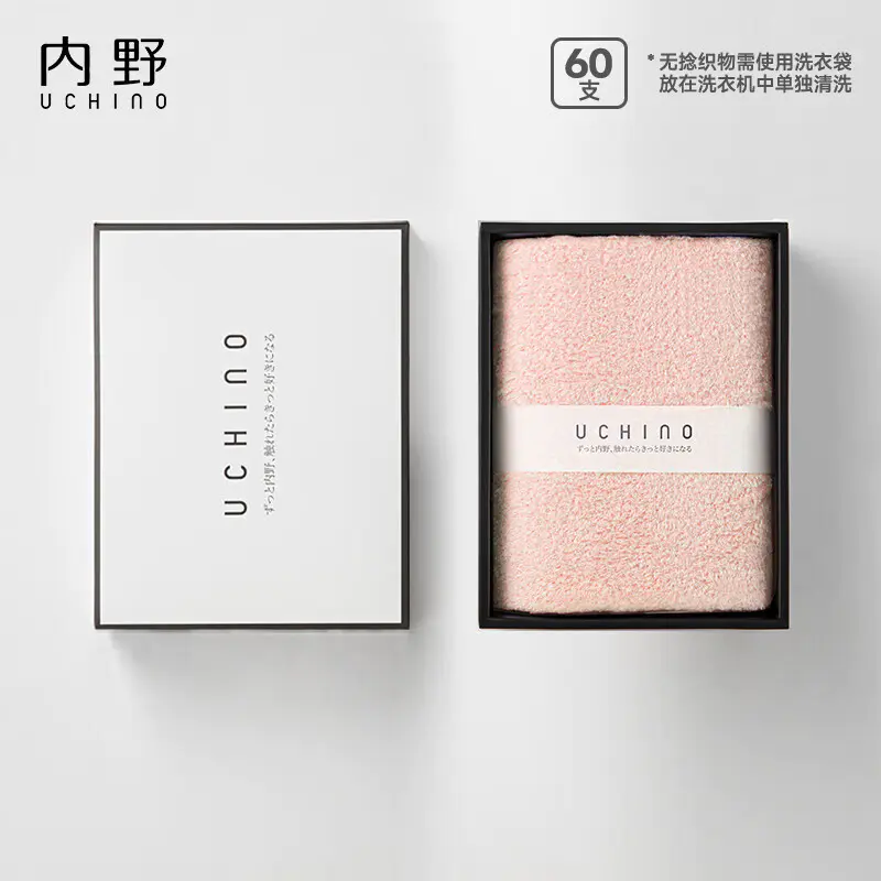 内野新棉花糖浴巾Pro礼盒版以新疆长绒棉为基础,通过60支高支精梳、无捻纱专利等技术,实现吸水性、抑菌性、安全性与耐用性的全面突破,同时兼顾轻盈便携与养护便捷性,是一款兼具日式匠心与科技创新的高端毛巾产品。