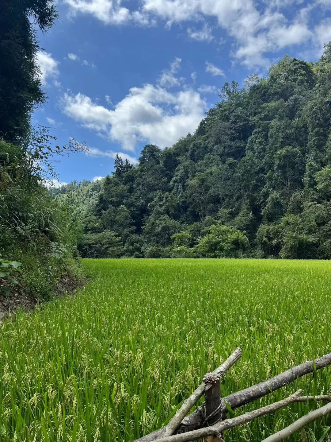 客栈是一个架空的二层小楼,旧旧的木制楼无不写着它的年龄,二楼的木地板踩上去就是咯吱咯吱的,走一段路彷佛能将二楼踩塌了。但四周又十分静谧,这点响声又被放大,却显得生机勃勃,与山中不知名的虫鸣鸟叫混响。
