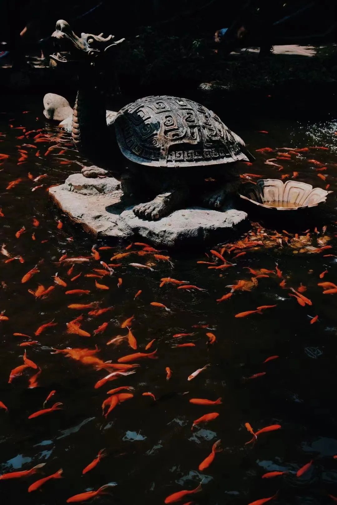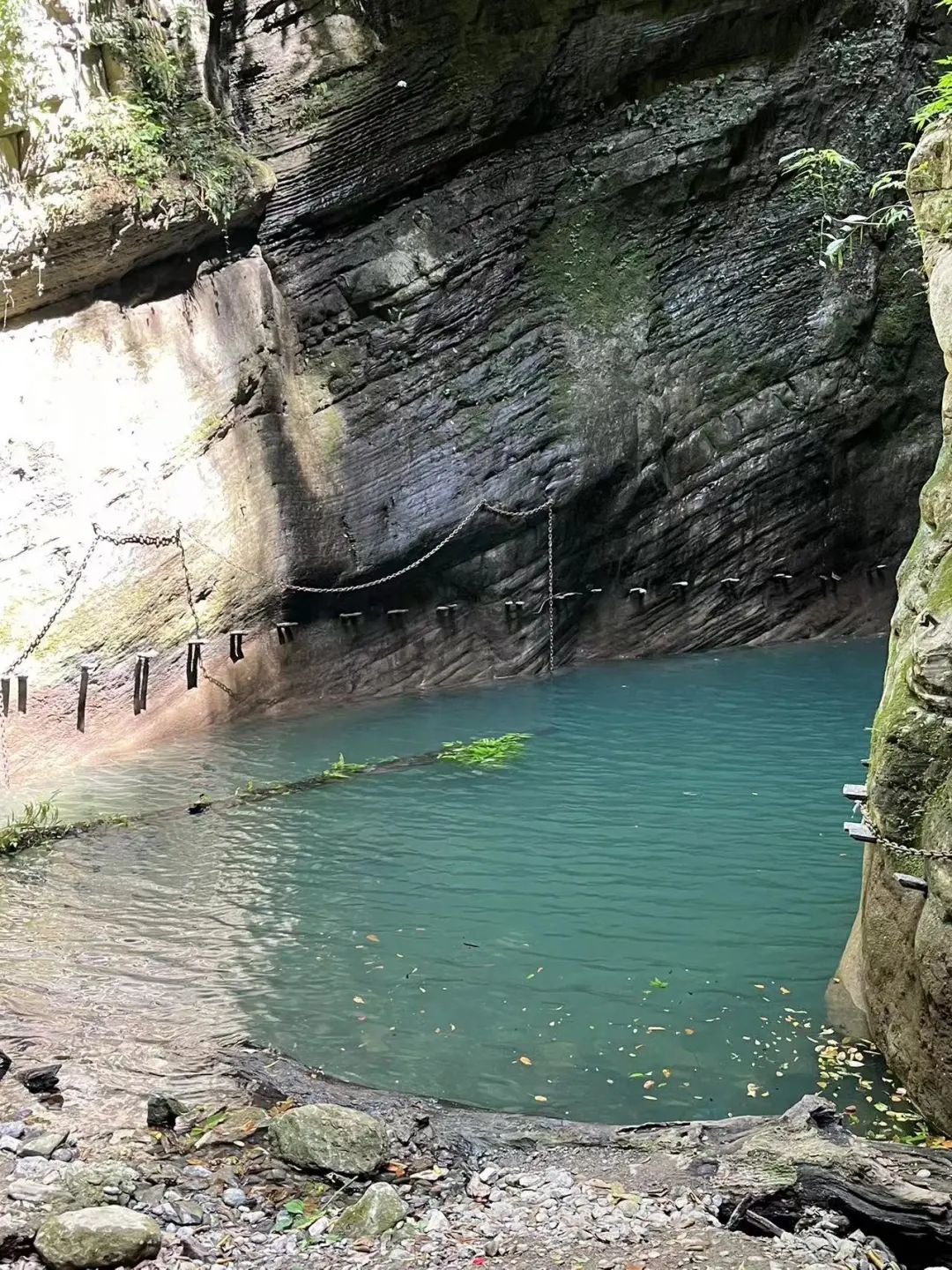 下山途中路过一个小水潭子,水不太深,边缘处清晰可见白石铺成的河床,中心处是渐深的绿色,靠墙处往下有个暗洞似的穴,彷佛水是从这儿漫出的。
