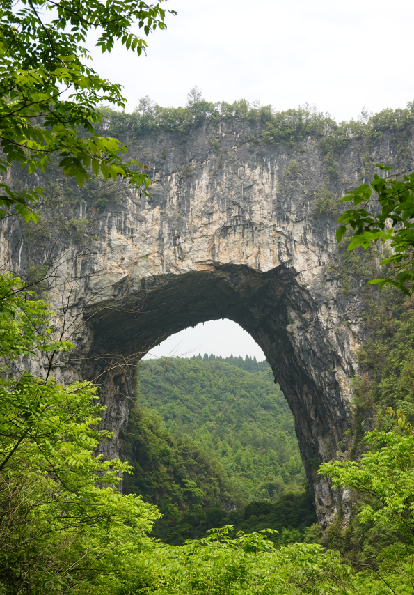 大家在一个天然平台处休整,远处有一座石拱门似的天然石桥,大家吃吃东西看看景,入目是绿色的树,蓝色的天和白色的石,心脏处鼓鼓的,和大自然的强烈共振在此刻达到巅峰。