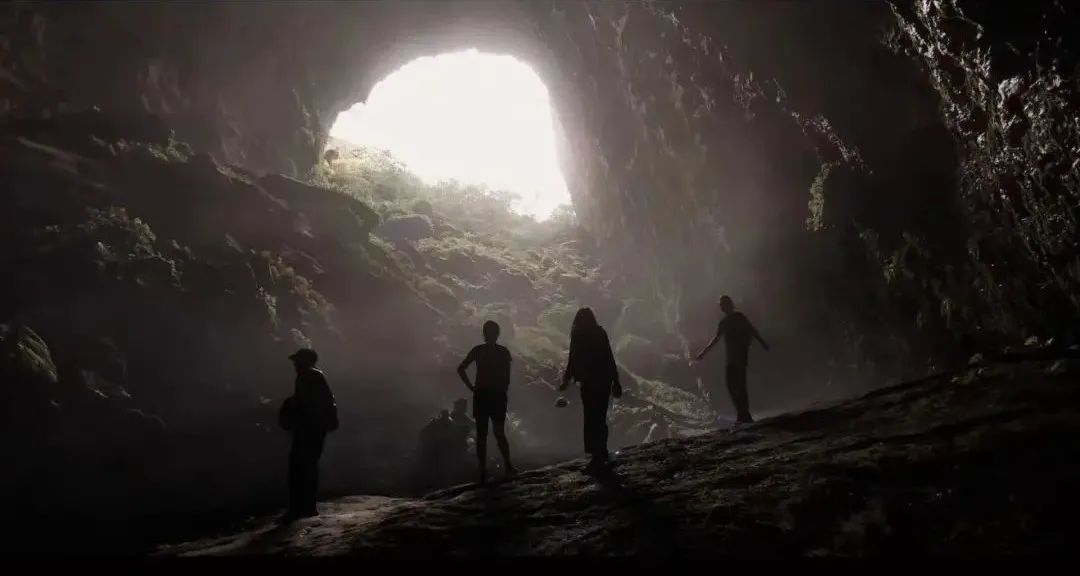 我们一行人轮流打头阵,两个 60岁+ 的队友跟在后头,领队殿后,在关键路口指引我们,洞里的地平面大概是一边高一边低交错着来的,我们经常从这边高的岩石走到另一边的岩石,看不清的暗河在洞里只有流动的声音,应该是走了十来分钟,渐渐洞穴的高度变低,领队在后头提醒前头高个子男生低头,洞穴大小在很明显地变小,再慢慢走大家就只能爬下身子手脚并用地往洞口爬上去,洞口也没有很低,蹲着是没问题的,洞口的形状像一个撕裂的口子,像产道,也很像眼睛,我觉得不像月亮。