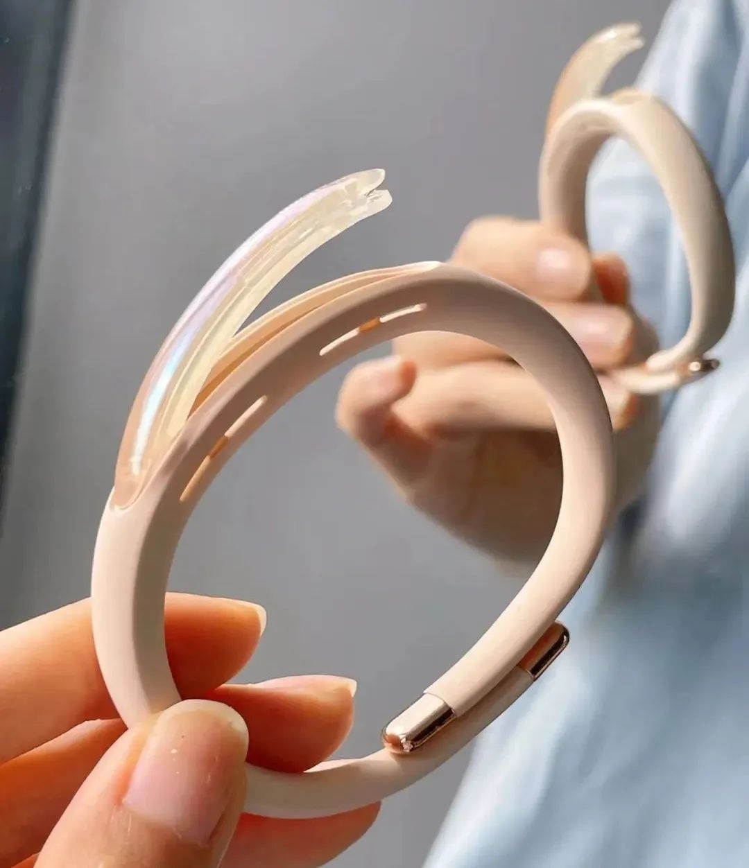 精油仓里的精油用完后,把精油仓抠出更换即可,非常方便,一支手环连续用几个夏天都没问题呢! 其实最先拿到锐舞元气驱蚊手环的时候,象君便被它的颜值吸引了。清新淡雅的颜色,还有休闲的设计,像Cartier手环一样一扣,看起来就像一个日常佩戴的小饰品。为了贴合不同人群的手腕大小,锐舞元气驱蚊手环采用了先进的记忆钢丝。摸了摸材质,手感细腻柔和,质感轻盈,戴在手腕不仅不会刺激皮肤,还没什么重量。
