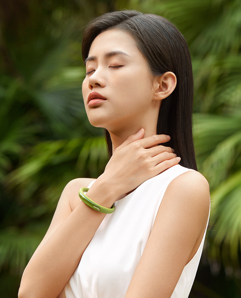 戴在手上,就像给你的周围隆起了一层隐形的防护罩,蚊子都没办法靠近你!以前每次用驱蚊手环,不是长得不好看,就是香味散的太快、耐用时间不够久...然而这款锐舞元气驱蚊手环首创液体真空精油仓,保证驱蚊因子完整性。960μL超大精油容量,一支精油仓足以顶6支驱蚊棒,实现180天强效驱蚊,让你整个夏天,都不会受到蚊子的骚扰!将驱蚊手环戴在手上闻了闻,有一股浓浓的植物清香,但一点儿也不会觉得刺鼻,夜晚戴着也能安心入睡~