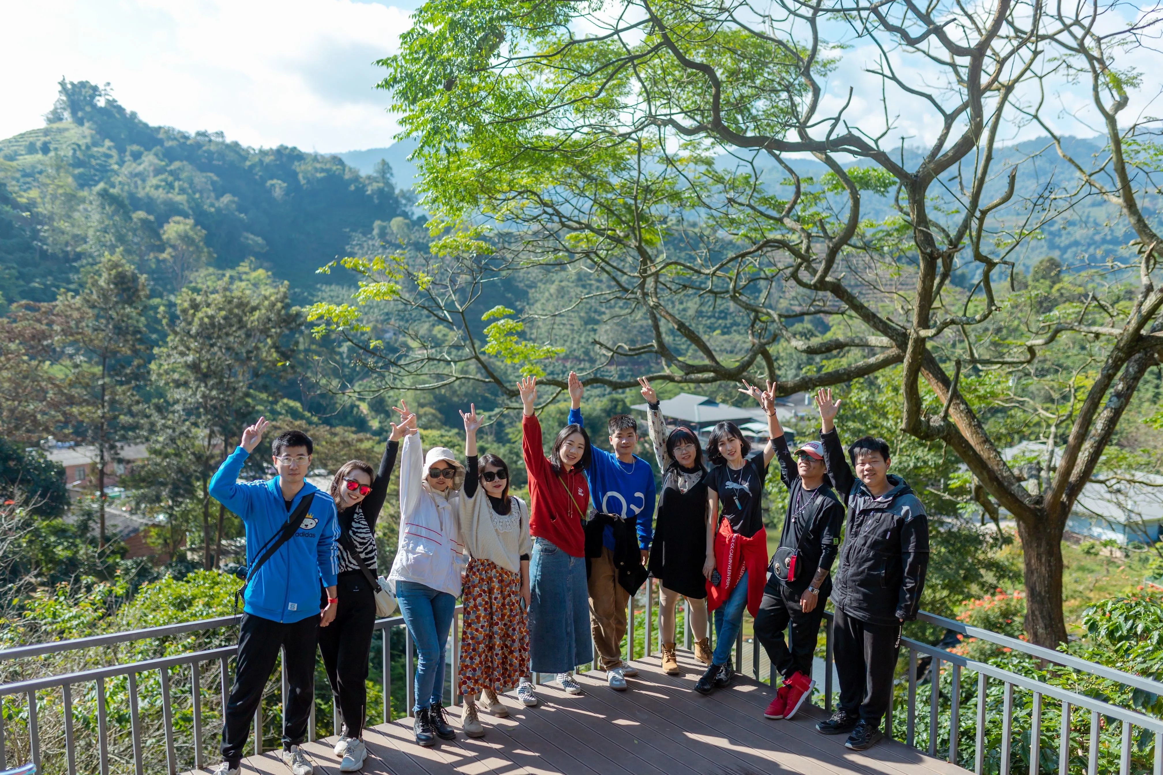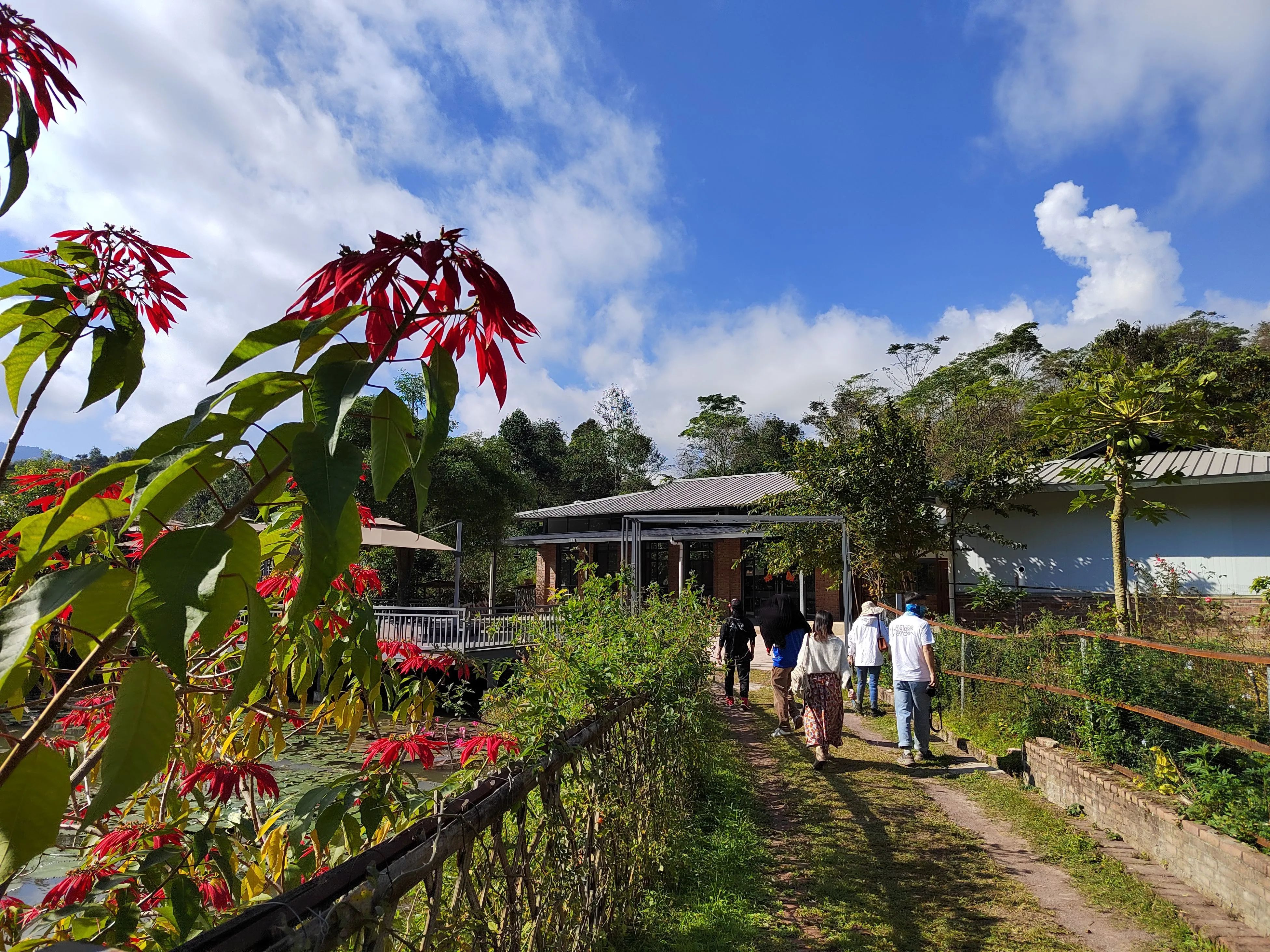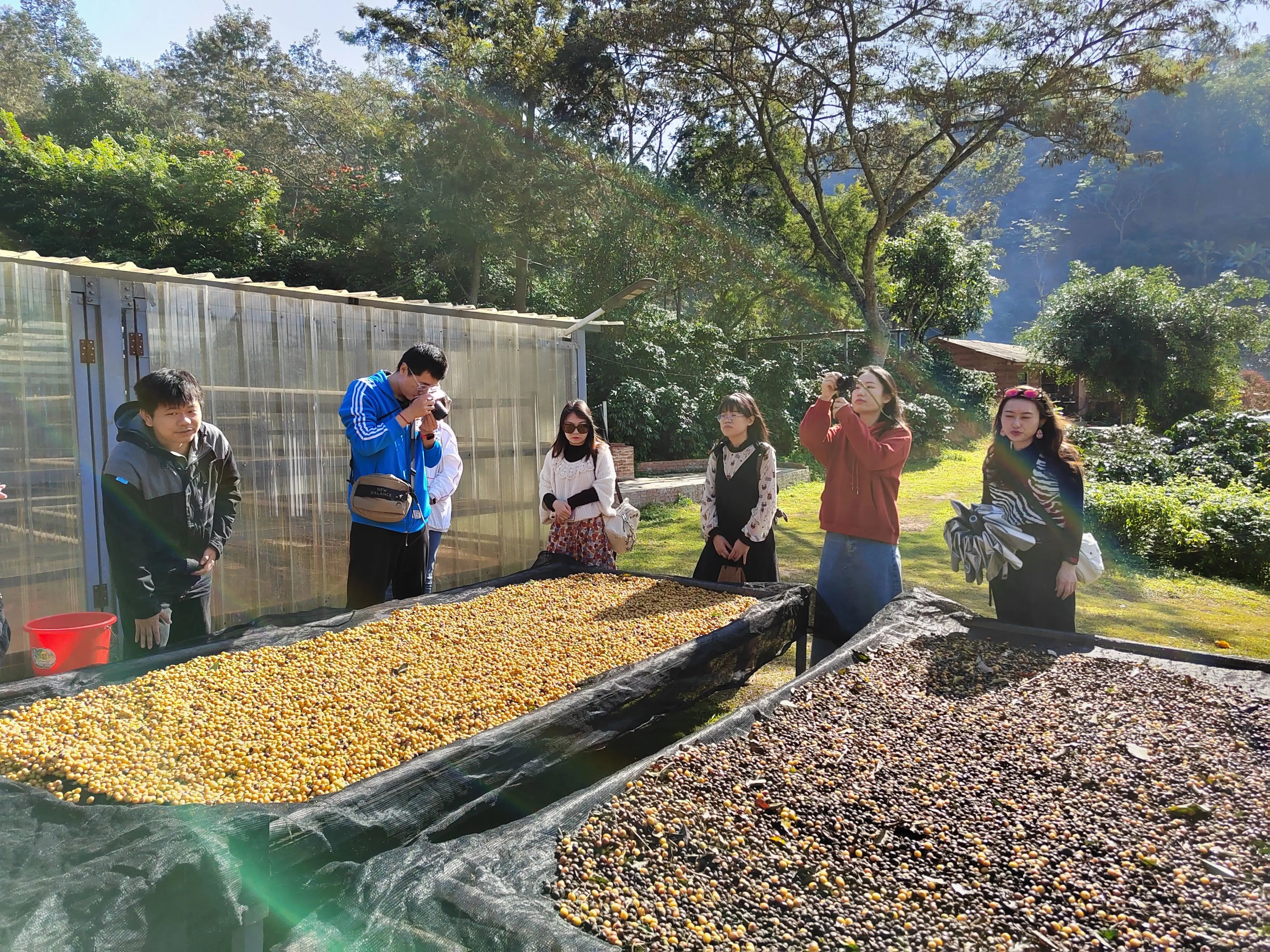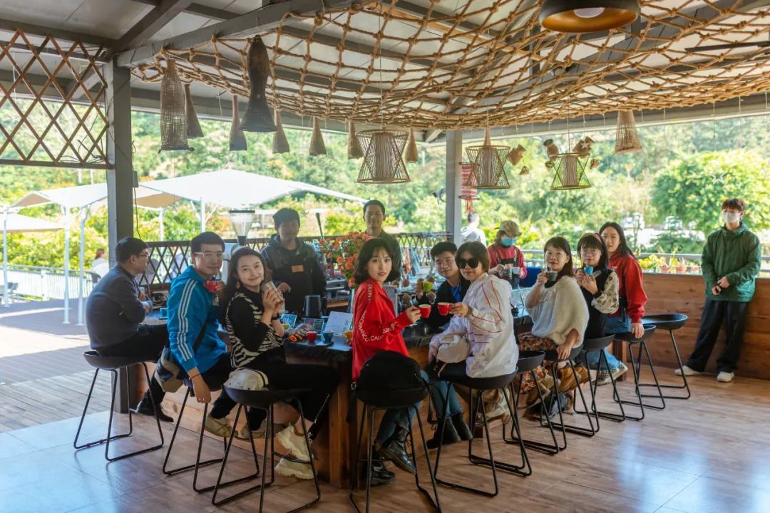 大自然对西双版纳格外偏心,赋予这里充沛的阳光,宜人的气候,数不尽的奇花异木,还有最最最可爱的野生动物......还有香浓的咖啡!小凹子咖啡庄园由现年80岁的老庄主廖秀桂创建于1997年,如今已经传承到第三代了。年轻的庄园主人带着我们参观庄园,讲解各个不同咖啡树种之间的差异,还有咖啡的不同加工过程。有些打工人每天早上都要喝咖啡,但还真是第一次看到结在树上的咖啡果。咖啡果可以生吃,果胶层清甜爽口,不过如果把里面的咖啡豆咬碎,就有点苦了。小凹子景色也不错,走上这个观景台,整个庄园尽收眼底。 在山灵水秀的地方拥有一座丰饶的庄园,是多少人的梦想呀。登上四面来风的干栏式小楼,阳光正好,微风和煦,大使们围坐闲谈。每一杯咖啡都能喝出不同的风味。如此度过一个午后,也算是“偷得浮生半日闲”了。亲手采集植物,萃取自然色彩,制作一副“植物砸染”……我的小小经验:采集的植物越嫩,汁水越足,染色就越容易。尽可能搜集多种颜色的花叶,才能让作品丰富多彩~