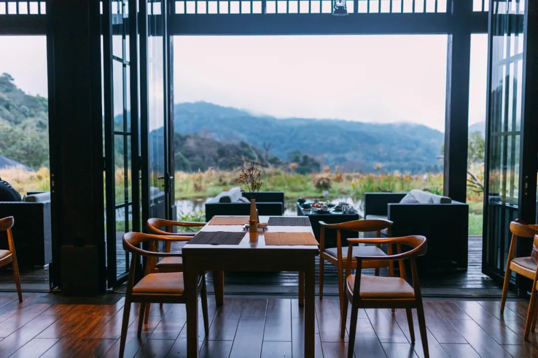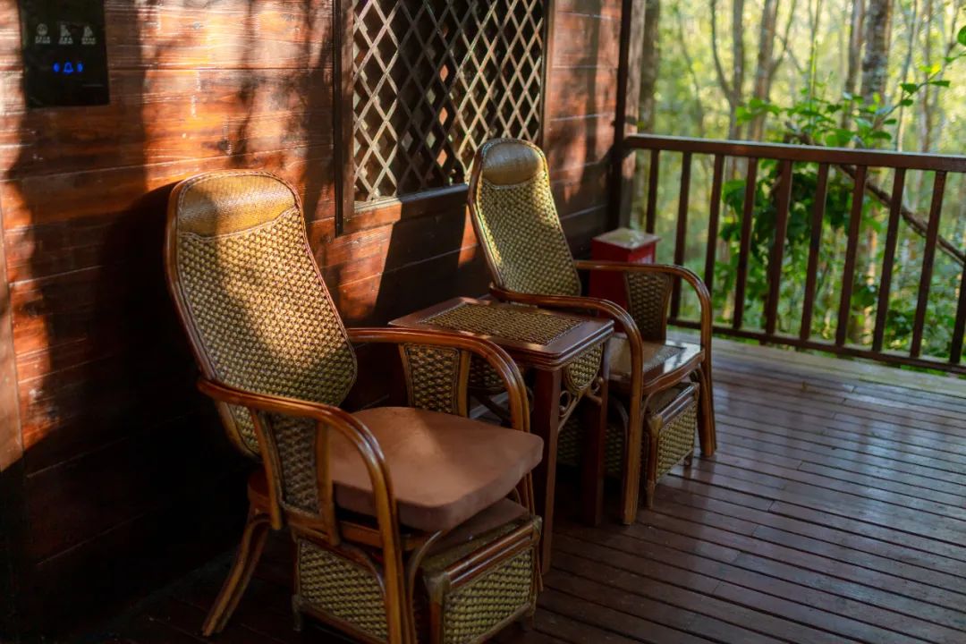 小熊猫庄园酒店是景区内唯一的酒店,每一间客房都是独栋木屋,房屋前后都有全景露台。