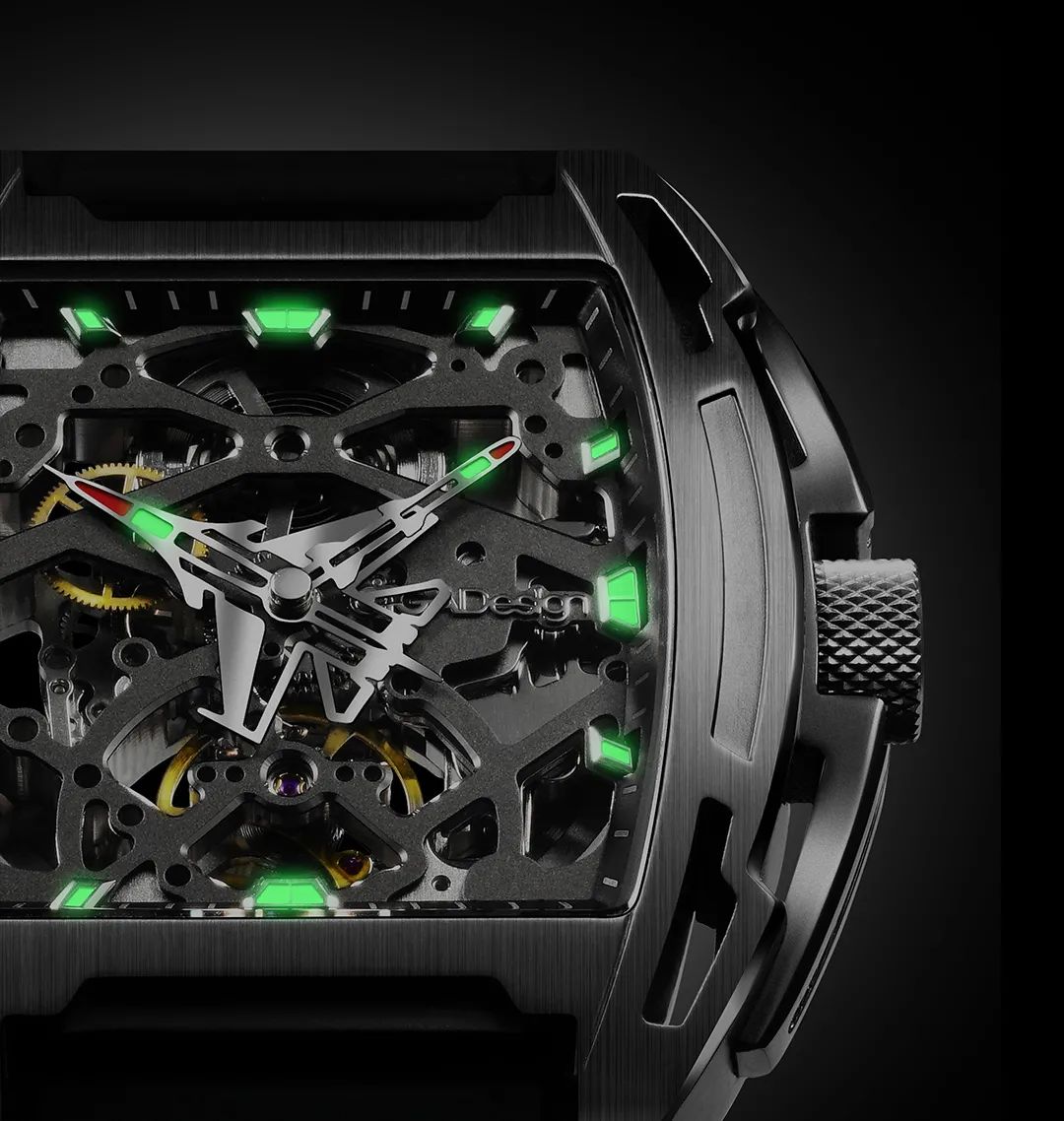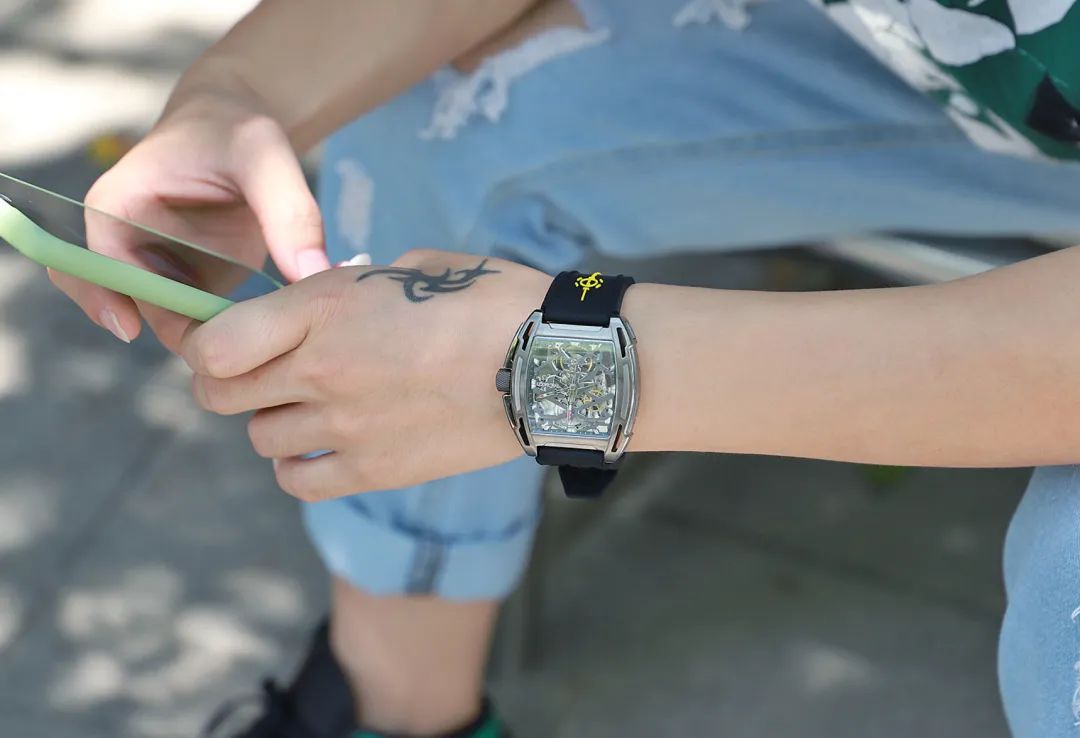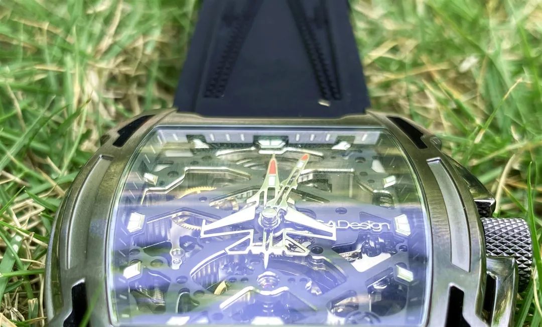 在致敬航母的道路上,玺佳也不忘坚持自己一贯的双面缕空设计,玺佳机械表Z系列航母版无论从正面看还是背面看,擒纵装置一览无余。