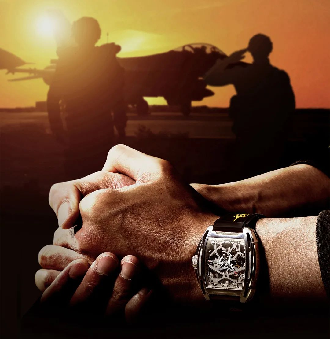 首先是原创弧形表壳,独特的双层构造从“尼米兹”级别的航母基底到甲板的扩张结构中撷取设计灵感,将精密机械隐藏于双层结构中,实现视觉上的减薄效果,给你更轻薄舒适的佩戴体验。