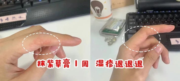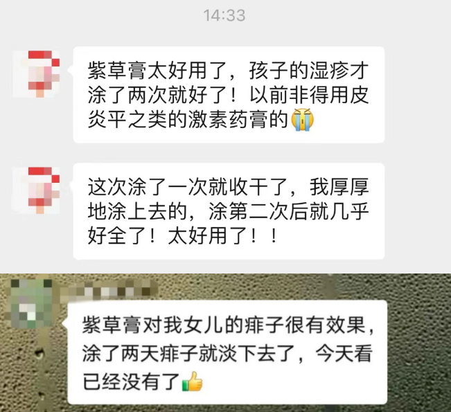 每年一到夏天就皮肤发红,手上长水泡、脖子上起红疹,自从用了紫草膏之后,每天抹2次,无论是手上还是脖子上都很明显得好转了!