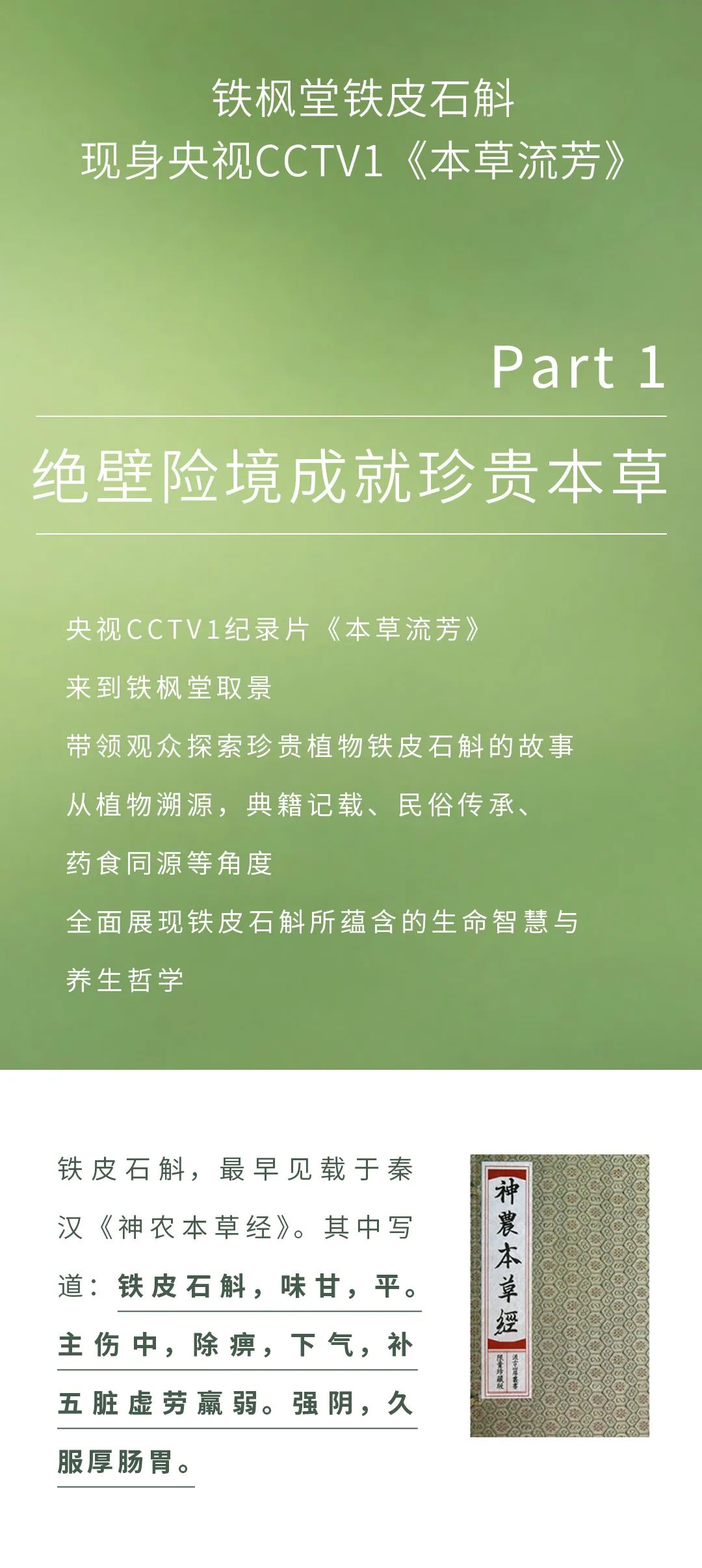 铁枫堂铁皮石斛登场央视《本草流芳》,一展风采