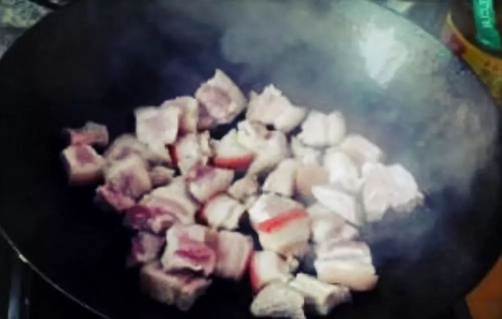 1、热锅凉油,因为有五花肉油要少放,油热后五花肉入锅煸炒出香味;