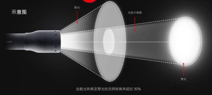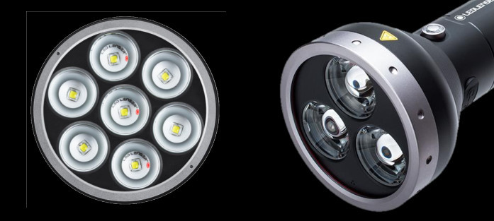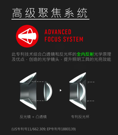 多透镜光学技朮 能把多个不同 LED 灯泡的光束完美地集中起来,光斑看上去就好像由单一LED发射出来般完整均匀,并且更光更亮。
