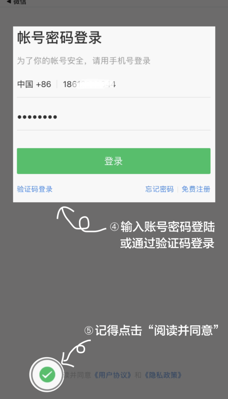 不要忘记勾选阅读并同意《用户协议》和《隐私政策》