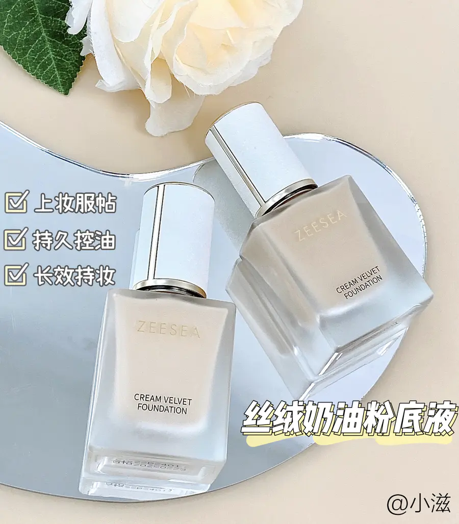 今天用的滋色新品奶油粉底液,上脸好铺开,延展性也没得说👍