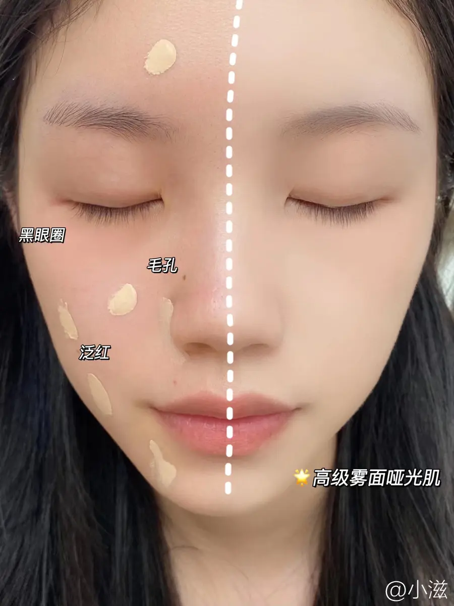 💯定妆前清透奶油肌妆感,定妆后高级雾面妆感