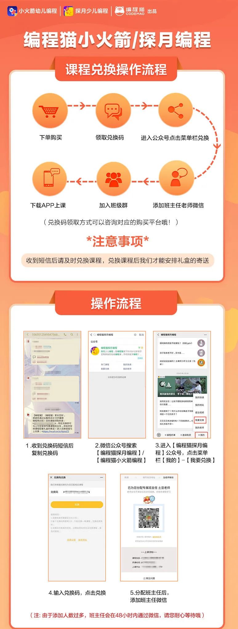 请家长在购买成功后务必按照详情页的兑换流程进行课程激活,并填写收货地址。