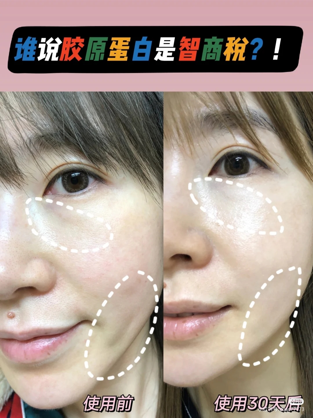 以上就是我自己的亲测证明胶原蛋白三肽不是智商税,如图❶脸蓬了 黑眼圈没了 淡斑 美白 黑头也没了,希望能给你些帮助