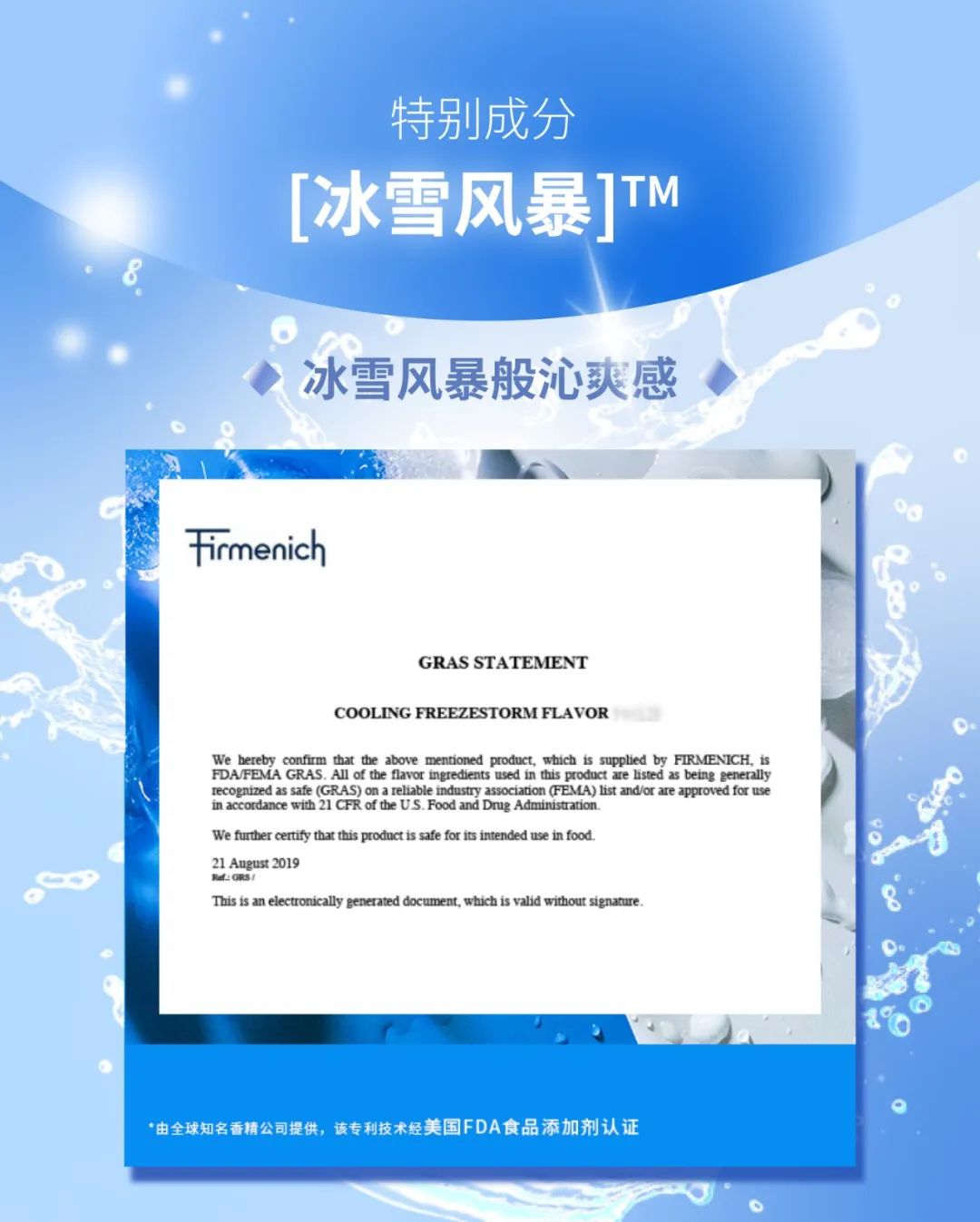 如何增加香气、清爽感的持久度?秘密就是瑞士专利凉感剂——“冰雪风暴”。