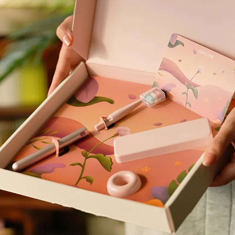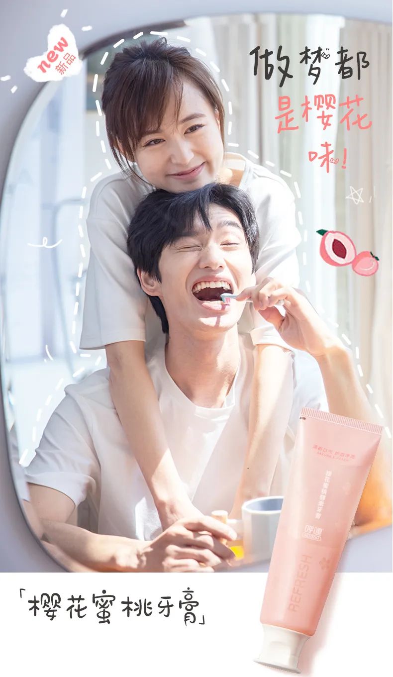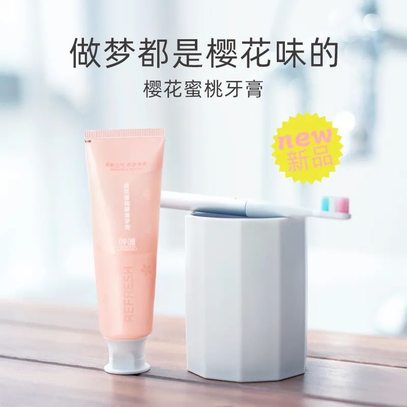 当牙刷上粉色半透明膏体接触第一颗牙齿,口腔里弥漫出一口咬开新鲜桃肉的酸甜汁水,不甜腻、一点点酸度,完美衬托出新鲜水蜜桃的香甜。