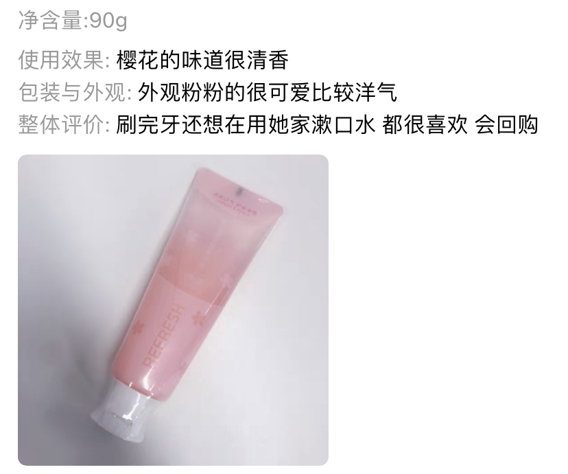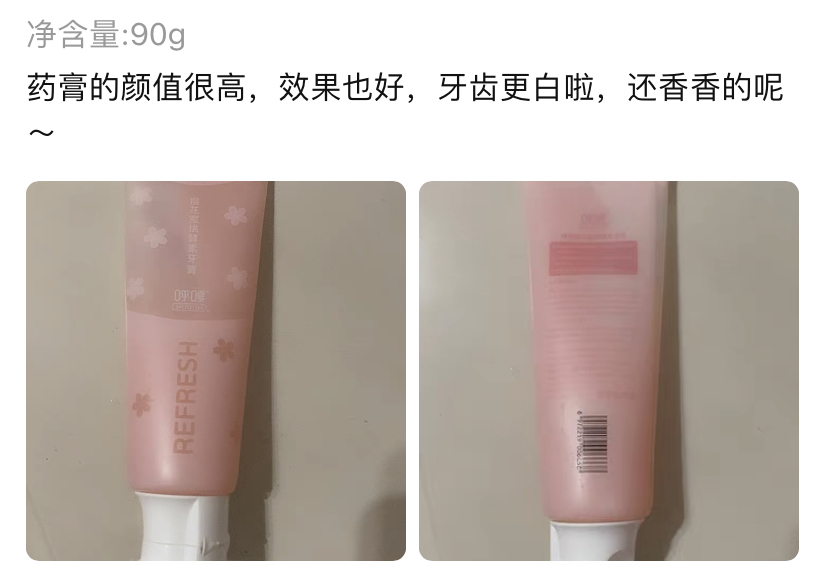 最近,我们收到了一批HUGGAH老用户们的反馈,大家提到樱花蜜桃酵素牙膏赞不绝口,香气和口感都是极佳的。