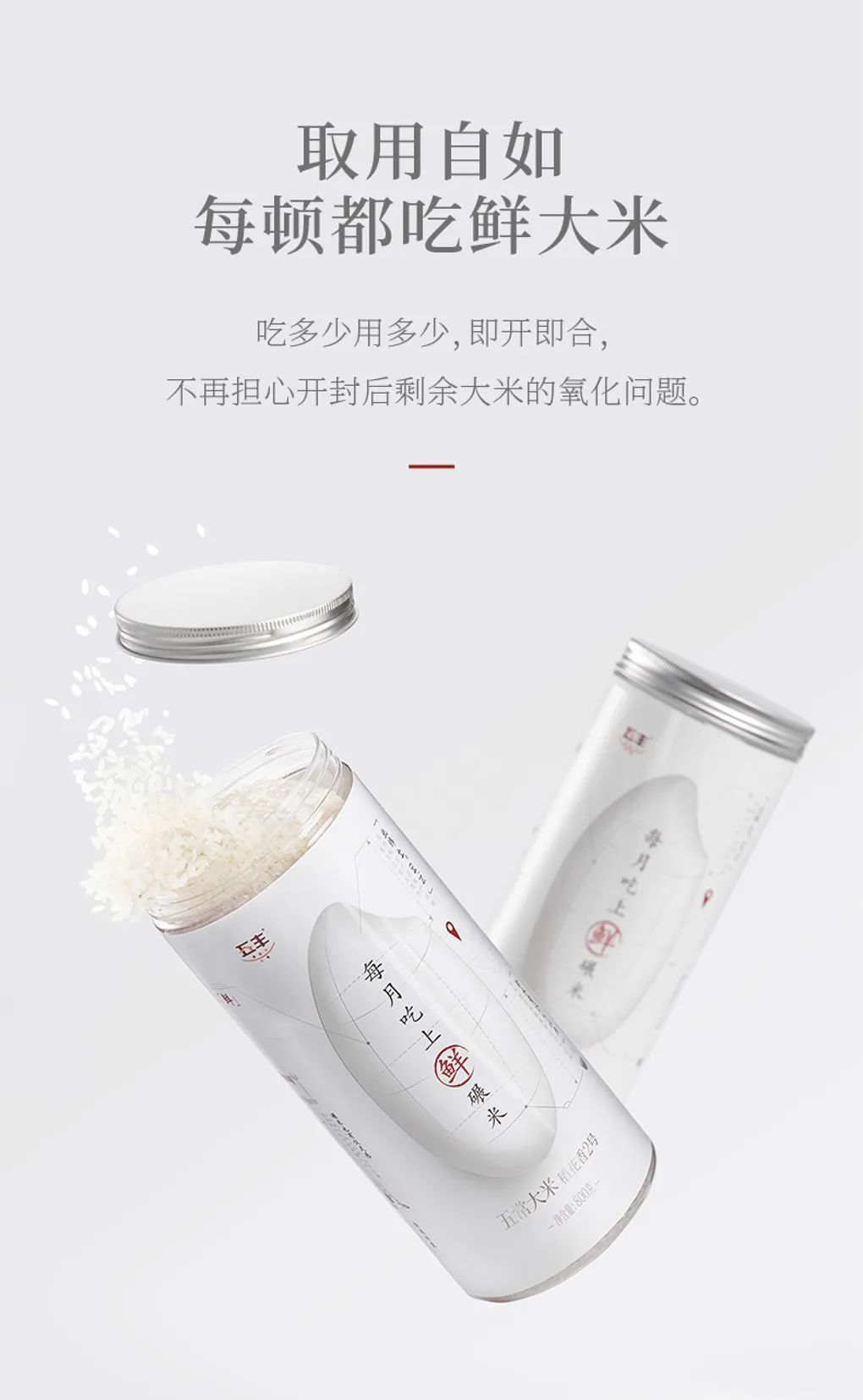 而且鲜碾米最好是使用小罐包装,吃多少用多少,不用担心开封后剩余大米的氧化问题。