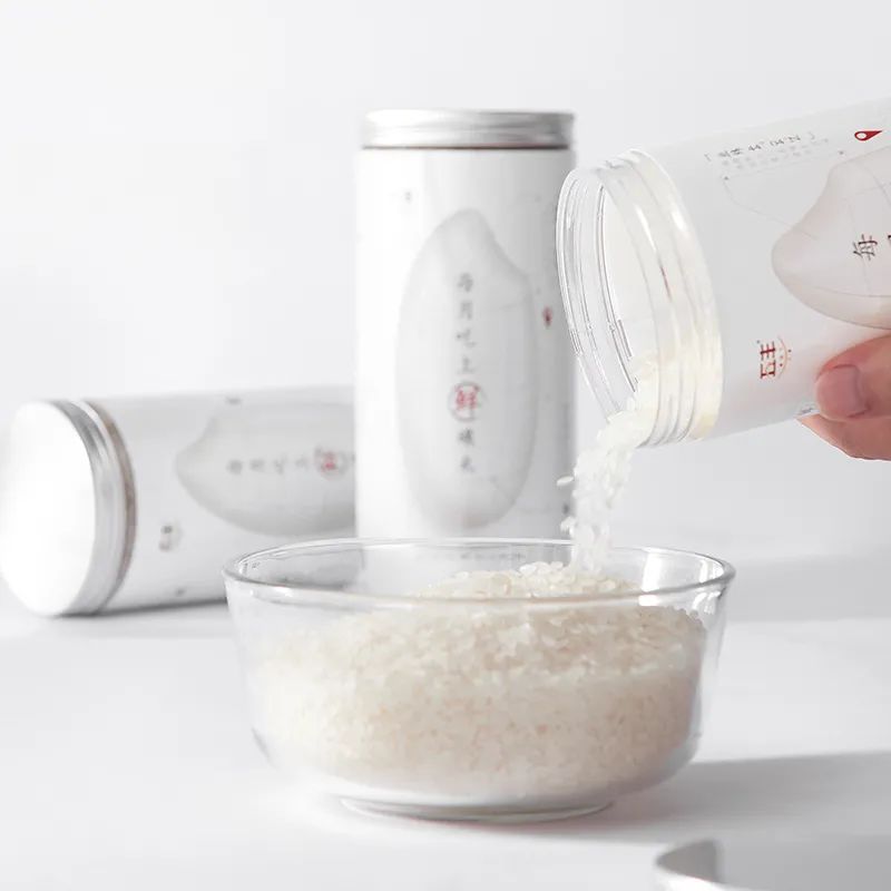 里层为热缩膜密封,一拉即开。外层是螺旋铝盖,铝盖的密封性更好。即开即合,吃多少用多少,不用担心开封后剩余大米的氧化问题。