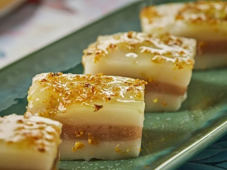 做法:生栗子去皮蒸熟烂后捣成泥,山楂糕切大片。将栗子泥分成 3 份,用 1 份摊开为底层,接着铺 1 层山楂糕片。再用 1 份栗子泥抹平在山楂糕片上,再抹 1 层枣泥馅儿后,最后 1 份栗泥抹在最上层,表面撒上点蜂蜜和桂花,就成了上、中、下为黄色,中间夹有红、褐色 5 层的板栗糕了。清香甜糯满口,健康美味,孩子们一定会喜欢。