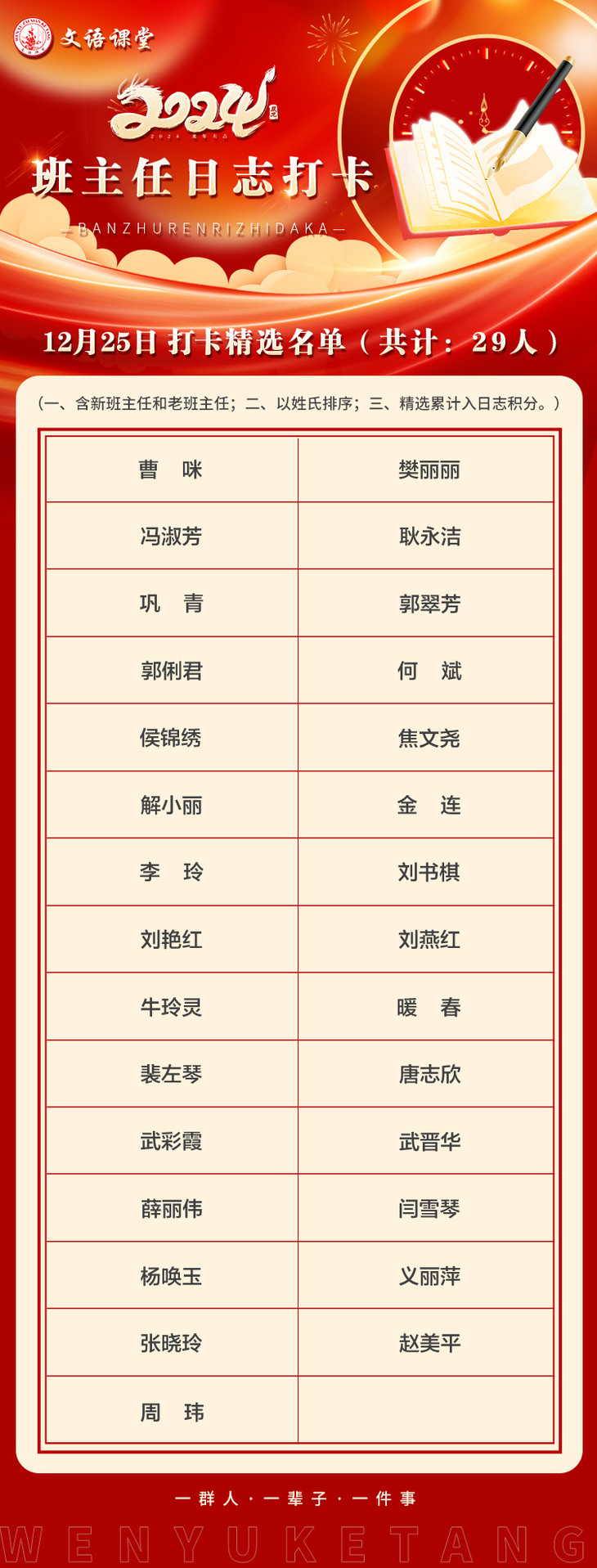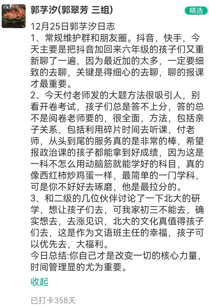 文语课堂12月25日班主任打卡日志精选合集