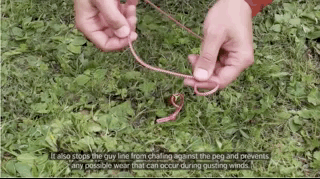 让风绳与帐篷面料保持大约90°夹角,可以把帐篷最大程度拉起来,更饱满。