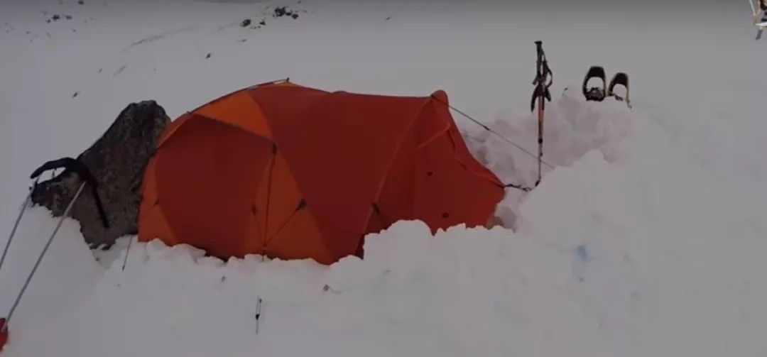 如果有条件,在帐篷周围尤其是迎风面垒石墙,如果是雪地,就堆雪墙,几十厘米即可,注意与帐篷保持距离。