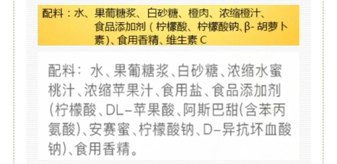 可是超市卖的果汁,咋一喝感觉还行,仔细一看配料表,就会发现配料表上有一长串的香精、果葡糖浆、柠檬酸等添加剂。