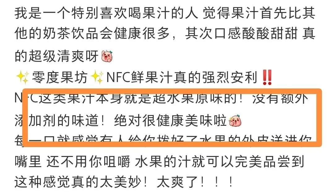 而且不少人对零度果坊的NFC果汁评价都很高: