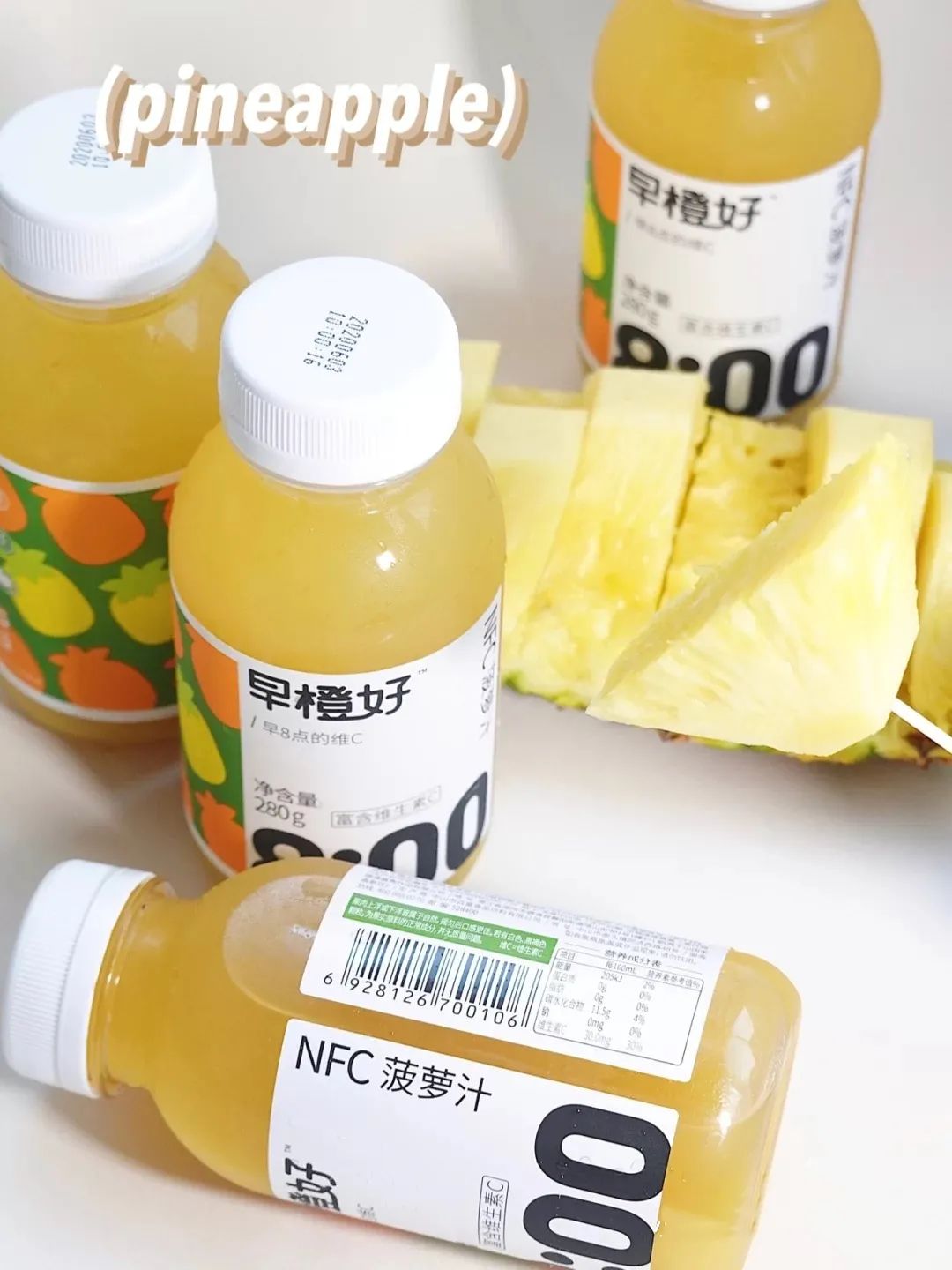 每瓶橙汁/菠萝汁都含有20%的维生素,不仅能补充身体所需的维生素,还能美白养颜、促进肠胃消化,还很适合搭配减脂餐哦。